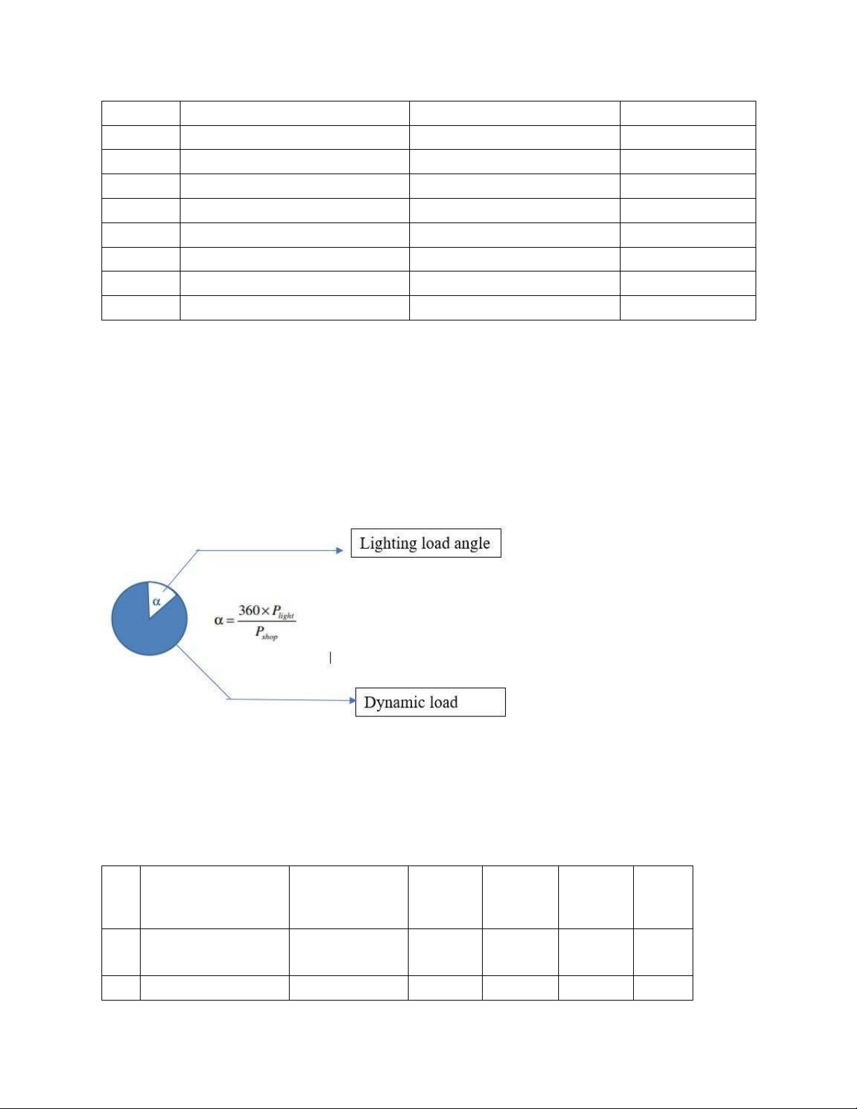 −Plight=σ .S=20.1678.5=33.57(kW ) => The same calculation with other shops DF Shop name Installed Pshop Plight S α0 cs demand(kW) (kW) (kW) (m2) 0.8 Cotton ginning 1400 1120 33.57 1678.5 10.8 shop 0.8 Textile shop 2500 2000 32.5 1625 5.85 0.8 Dyeing and 1200 960 34.375 1718.75 12.9 prinfting shop 0.8 Cleaning and 600 480 10.3125 515.625 7.73 packing shop 0.6 Repair shop 200 120 6.5 325 19.5 0.6 Wood work shop 150 90 15 750 60 0.6 Pump store 100 60 8.75 437.5 52.5 0.6 Administration 150 90 15.75 787.5 63 building 0.6 Ware house 50 30 16.5 825 198