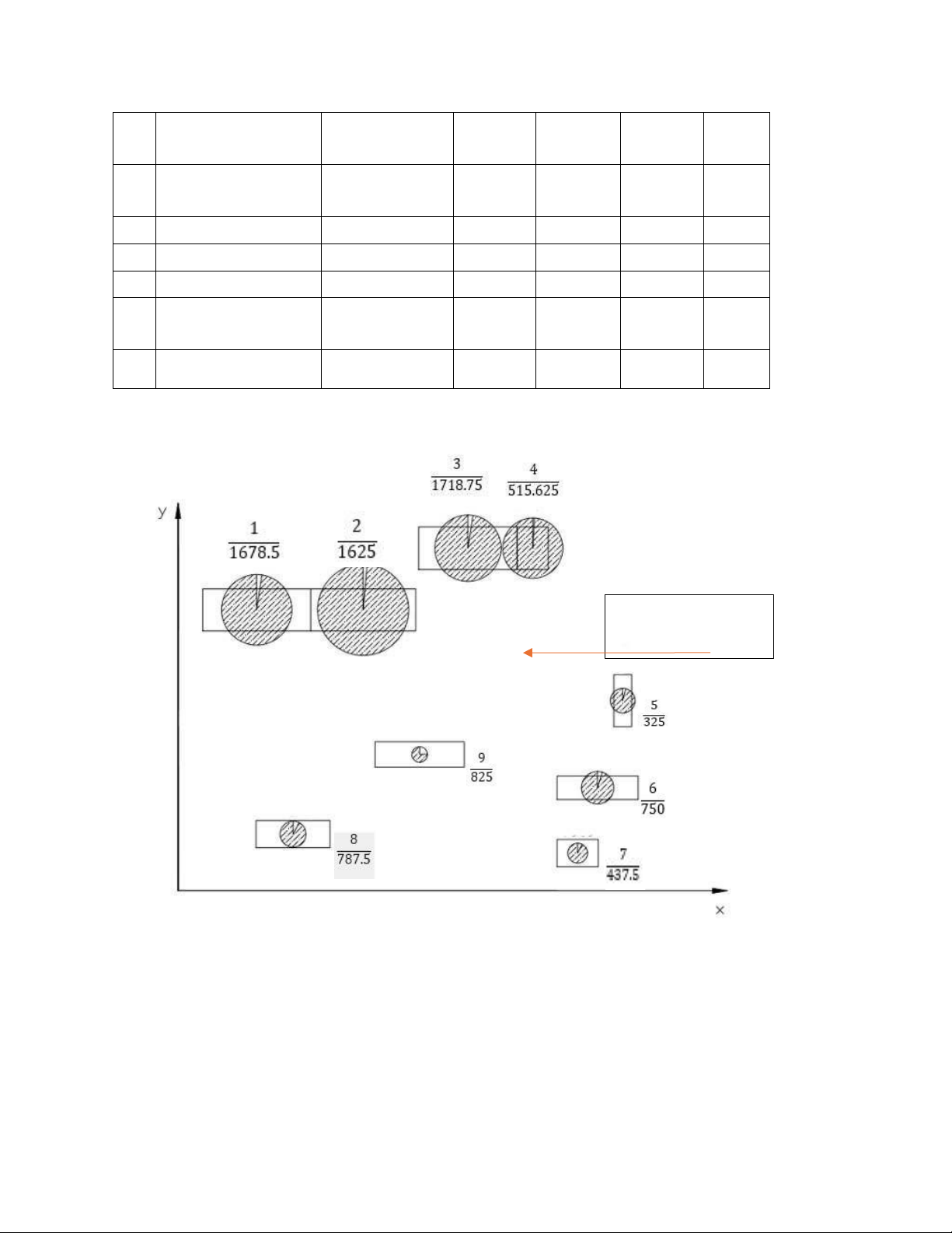 + xi, yi ,zi : load center coordinates i + s : load capacity i i No. Shop name x y s 1 Cotton ginning shop 37.5 87.5 1274.6 2 Textile shop 70 87.5 2251.2 3 Dyeing and printing shop 102.5 105 1097.6 4 Cleaning and packing shop 122.5 105 542 5 Repair shop 150 72.5 139.2 6 Wood work shop 142.8 45 113.7 7 Pump store 137.5 25 74.6 8 Administration bulding 50 32.5 114.4 9 warehouse 90 57.5 48.7 - x0=¿¿ 489.3 - y0=¿¿ 817.6 = > M(489.3; 817.6)