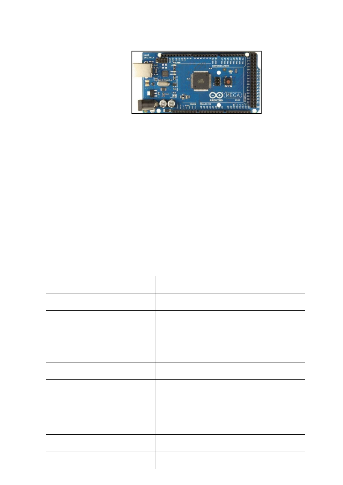 54 (of which 15 provide PWM output) Analog Input Pins 16 DC Current per I/O Pin 40 mA DC Current for 3.3V Pin 50 mA 256 KB of which 8 KB used by Flash Memory bootloader SRAM 8 KB EEPROM 4 KB lOMoAR cPSD| 60776878 Clock Speed 16 MHz ● Diagram of components:
