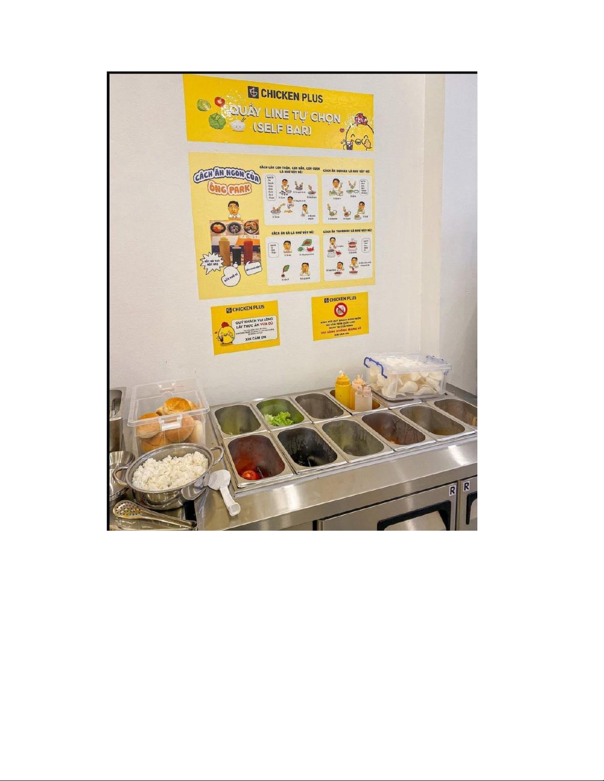 Similar to other fast food chains, Chicken Plus at Nguyen Gia Tri utilizes various food