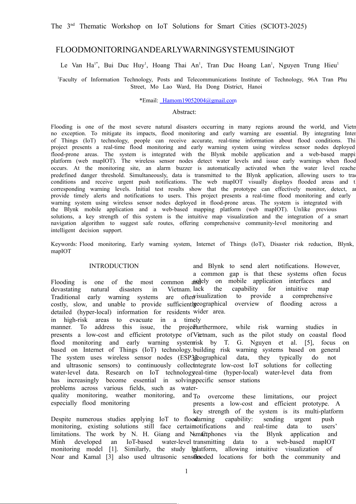 Keywords: Flood monitoring, Early warning system, Internet of Things (IoT), Disaster risk reduction, Blynk, mapIOT INTRODUCTION
