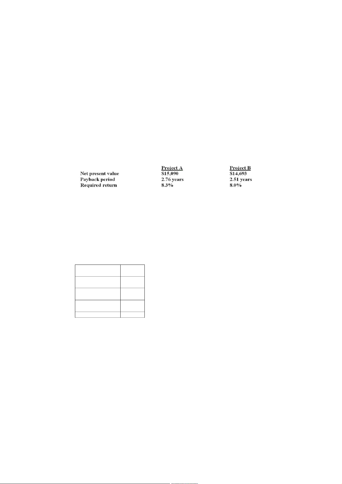 prepared the following data. Both projects have 5 year lives.