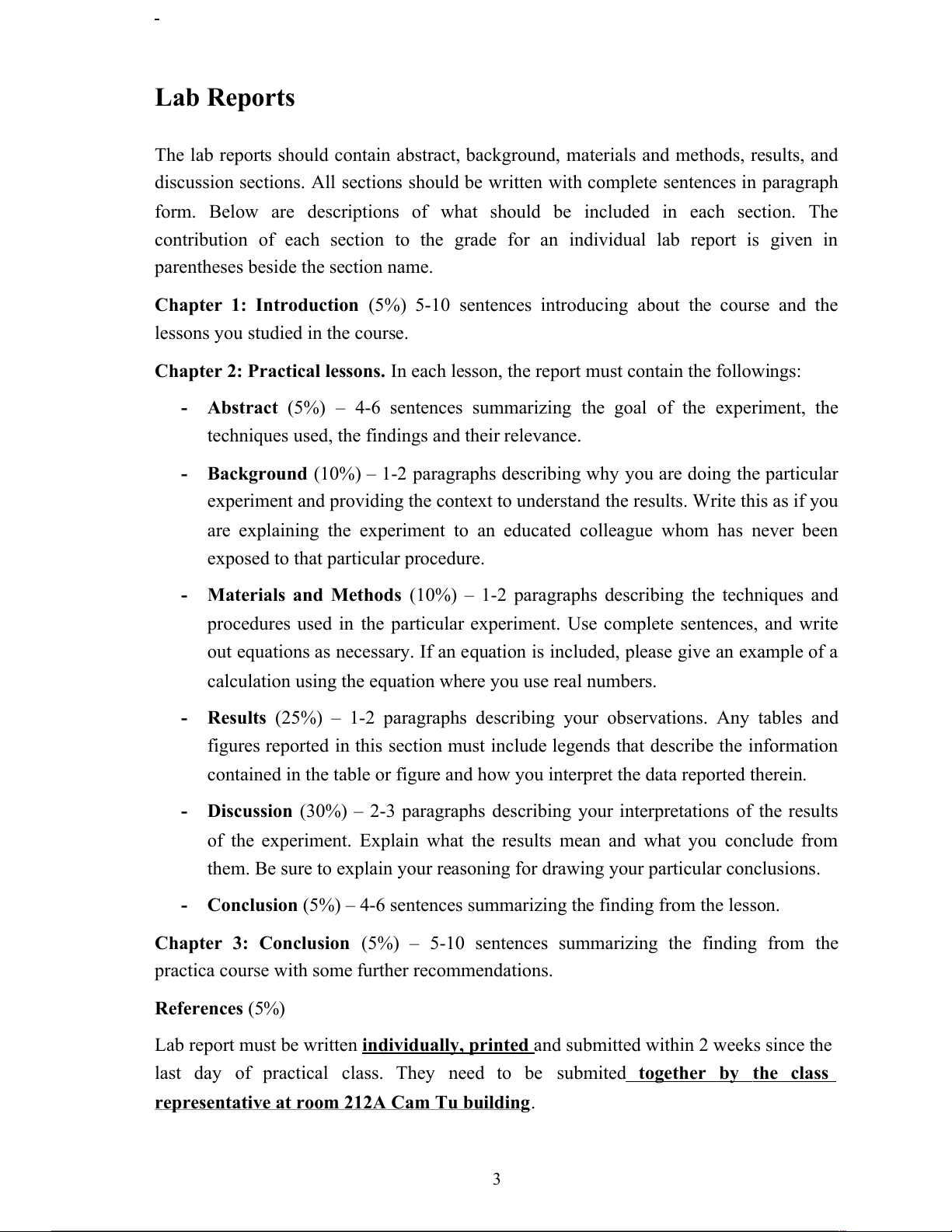 contribution of each section to the grade for an individual lab report is given in