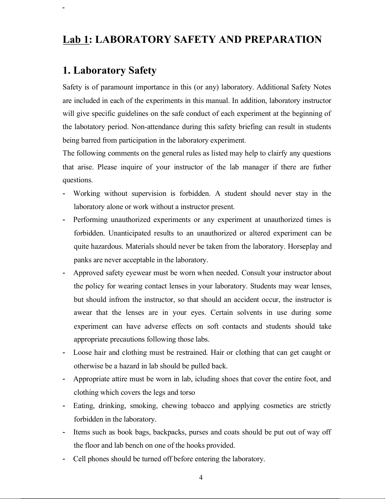 Cell phones should be turned off before entering the laboratory. 4 -