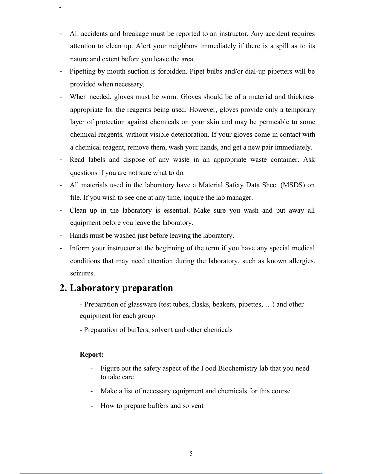 Lab 1: LABORATORY SAFETY AND PREPARATION 1. Laboratory Safety