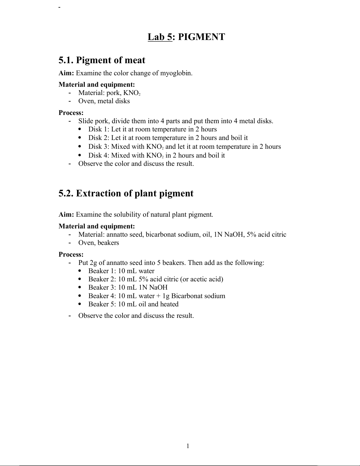 carrot). Observe and discussion about the stability of the suspension. 7 Lab 5: PIGMENT 5.1. Pigment of meat