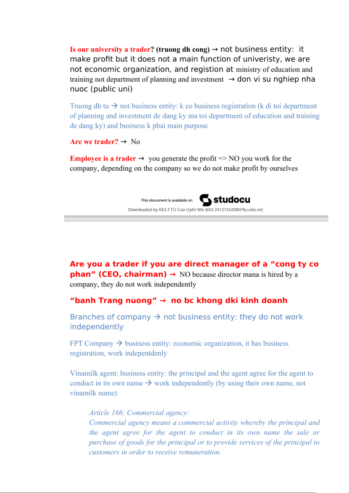 ● business trader: economic organisation so FTU university is not trader (don