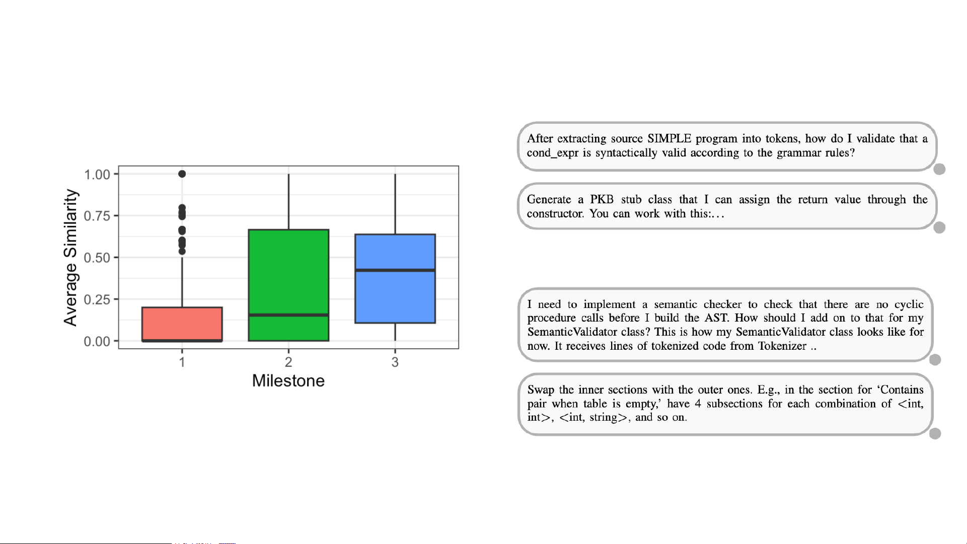 Students’ AI usage evolved from exploration to seamless integration, with increasing similarity scores across milestones. 20