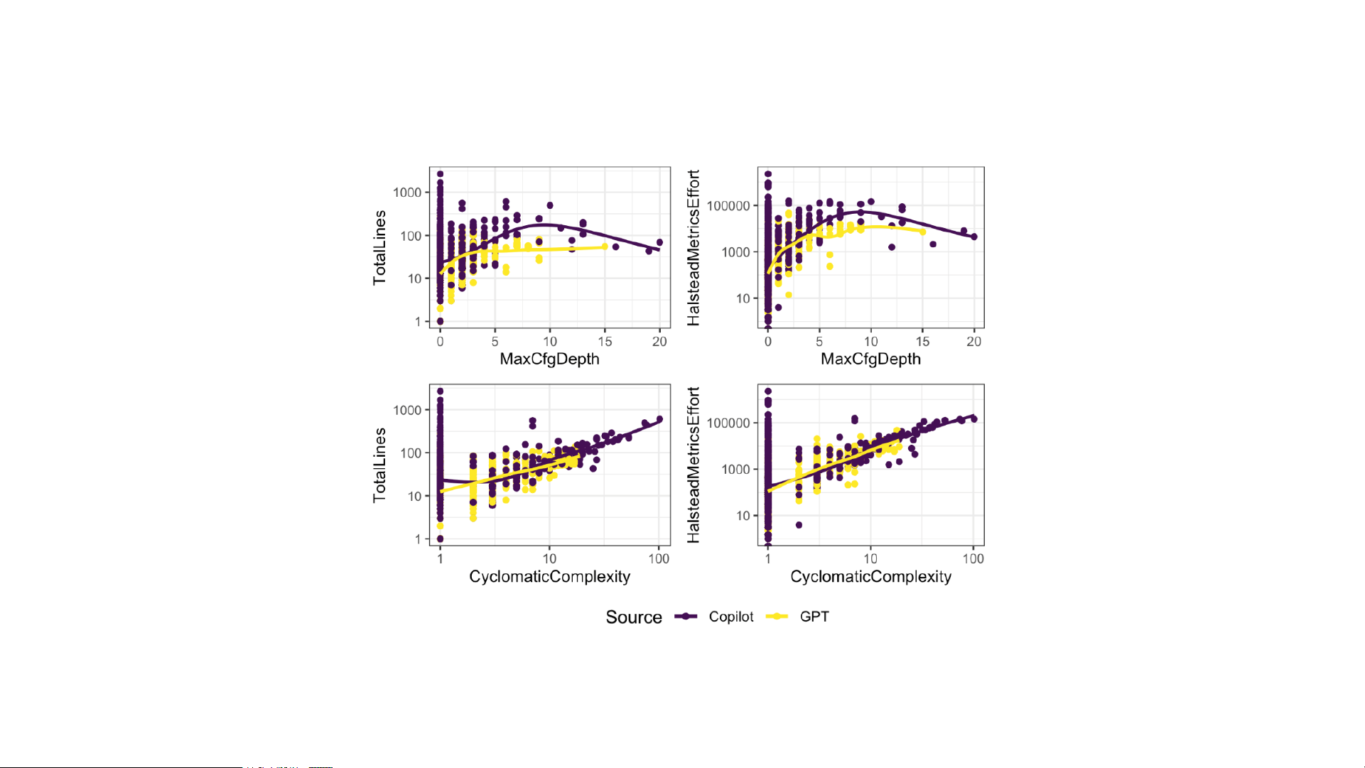 Figure 2: Comparison of ChatGPT and Copilot Complexity Across Various Complexity Measures