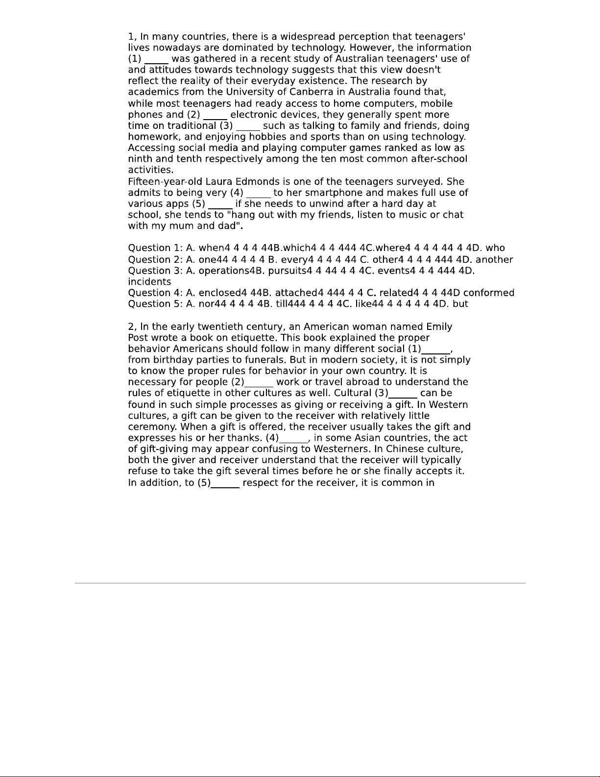 Gap Fill Exercises - Language and Etiquette (Example Questions)