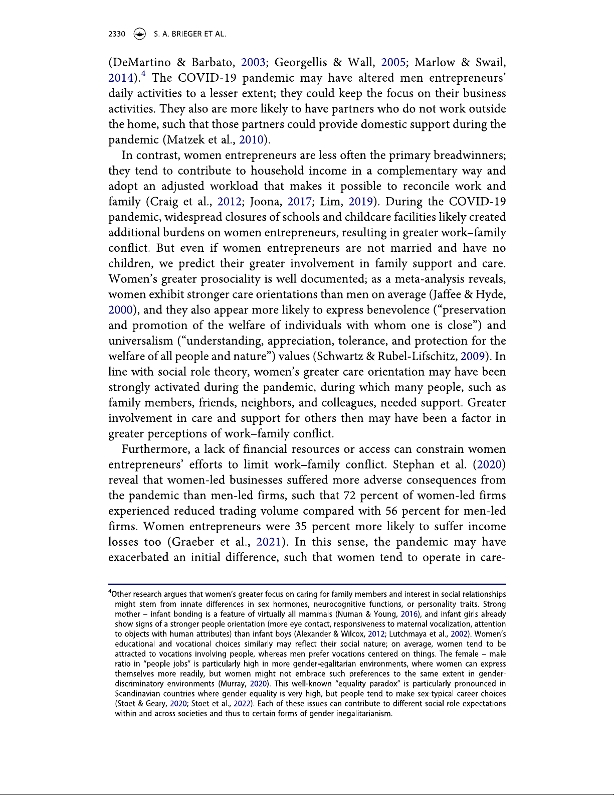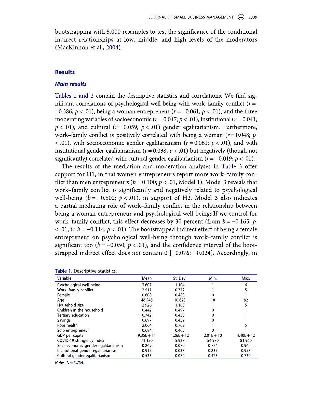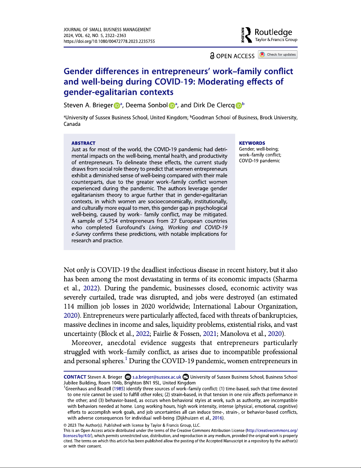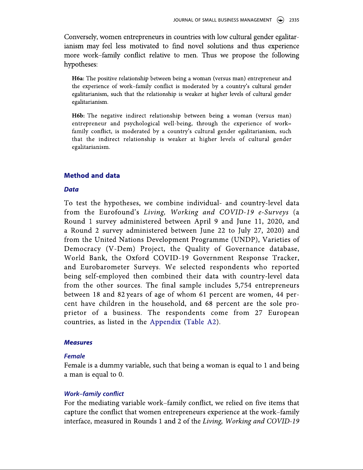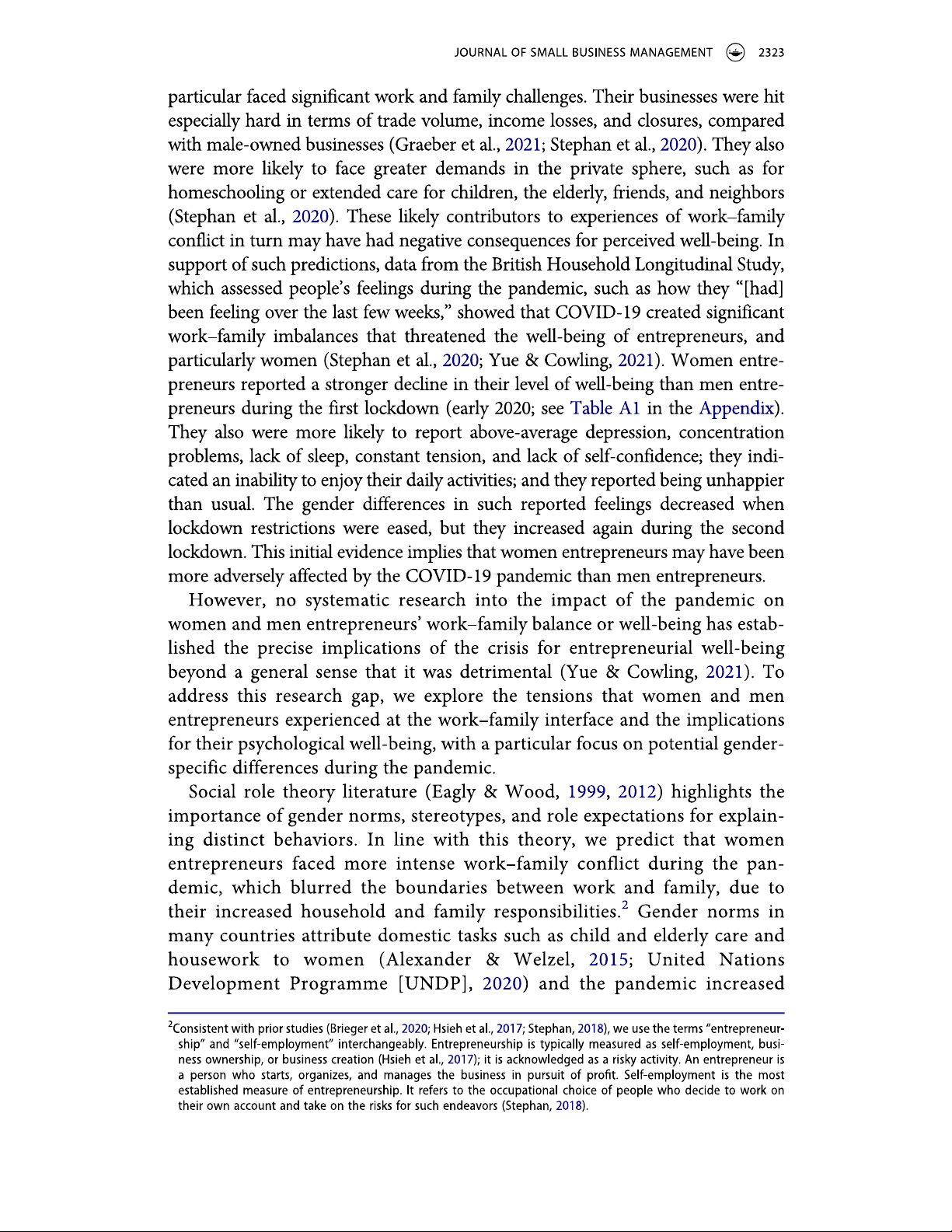 Gender differences in entrepreneurs' work-family conflict and well-being during COVID-19
