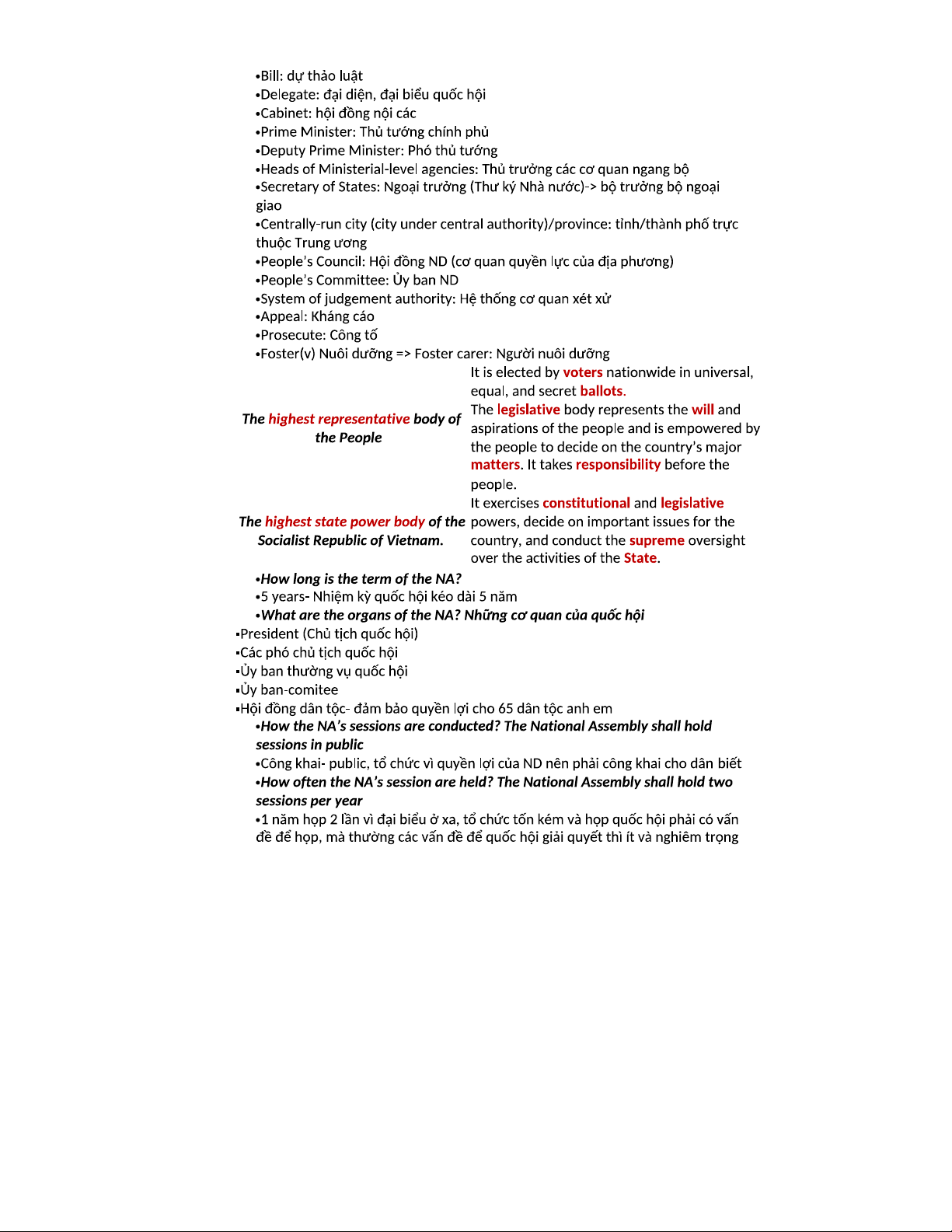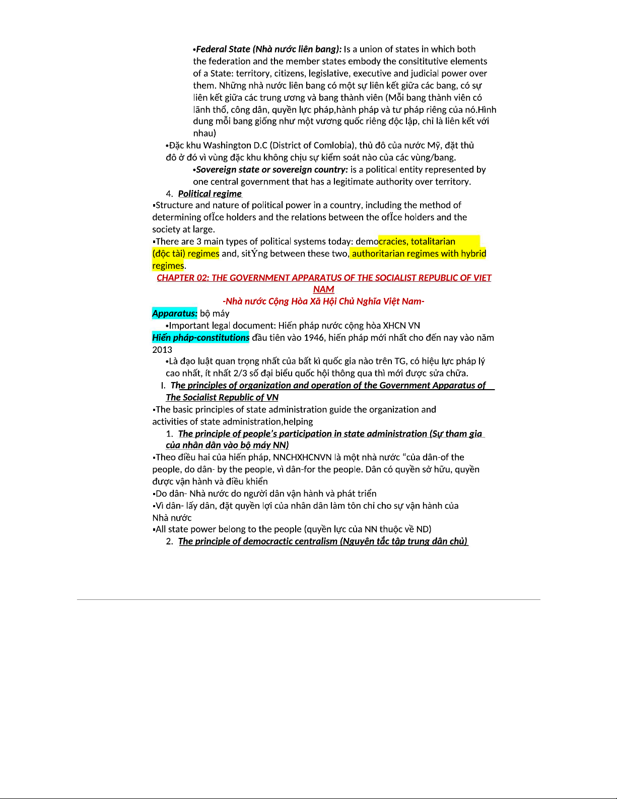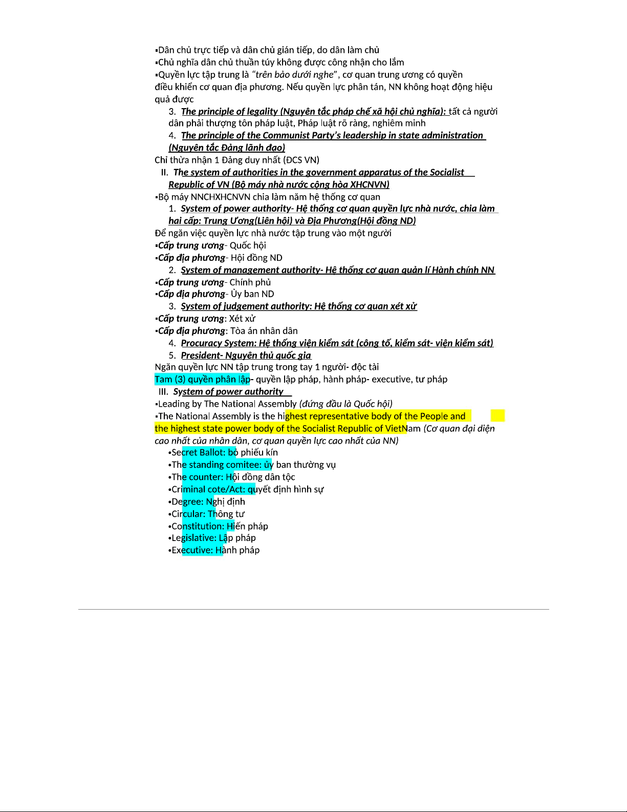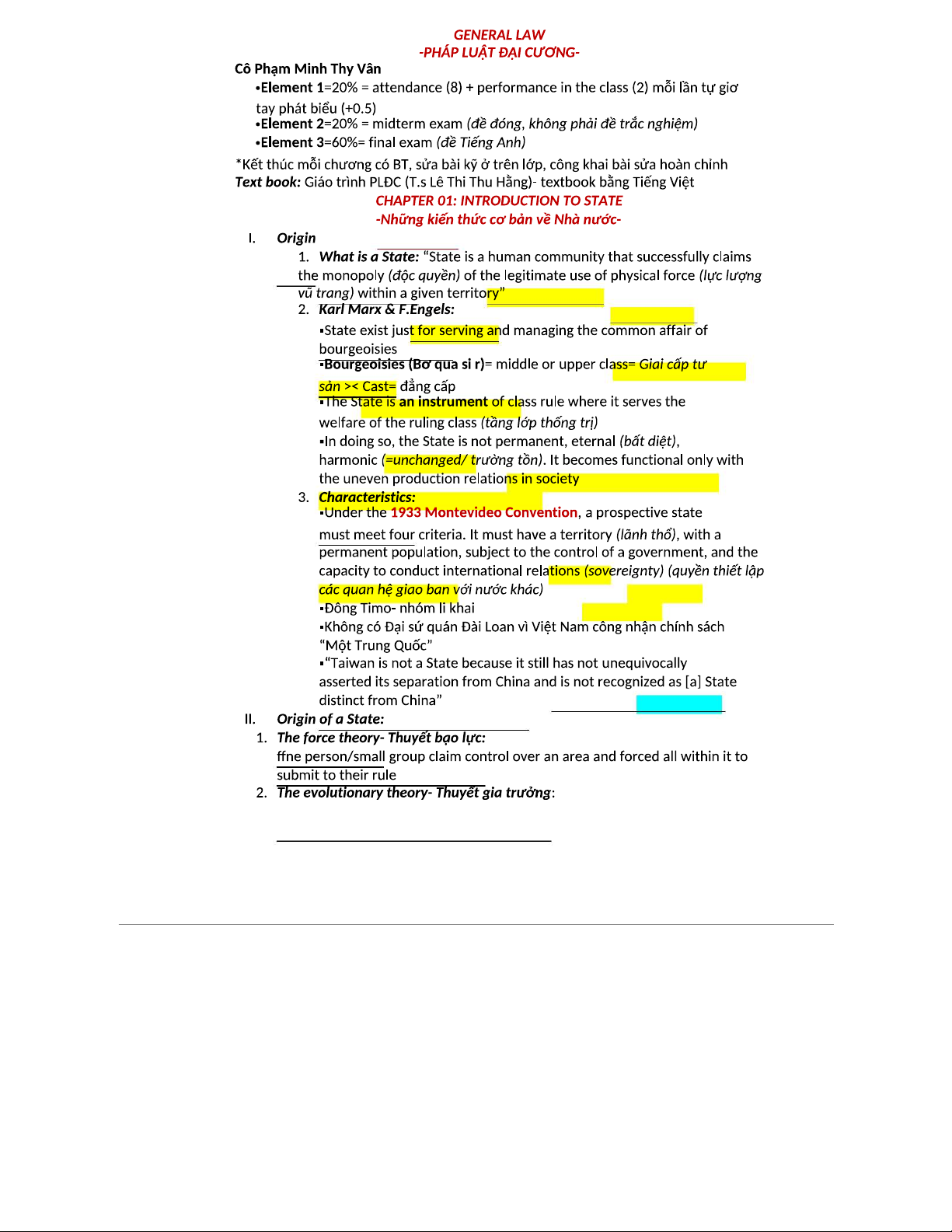General-LAW - Final Exam Notes on State Theory & Government in Vietnam