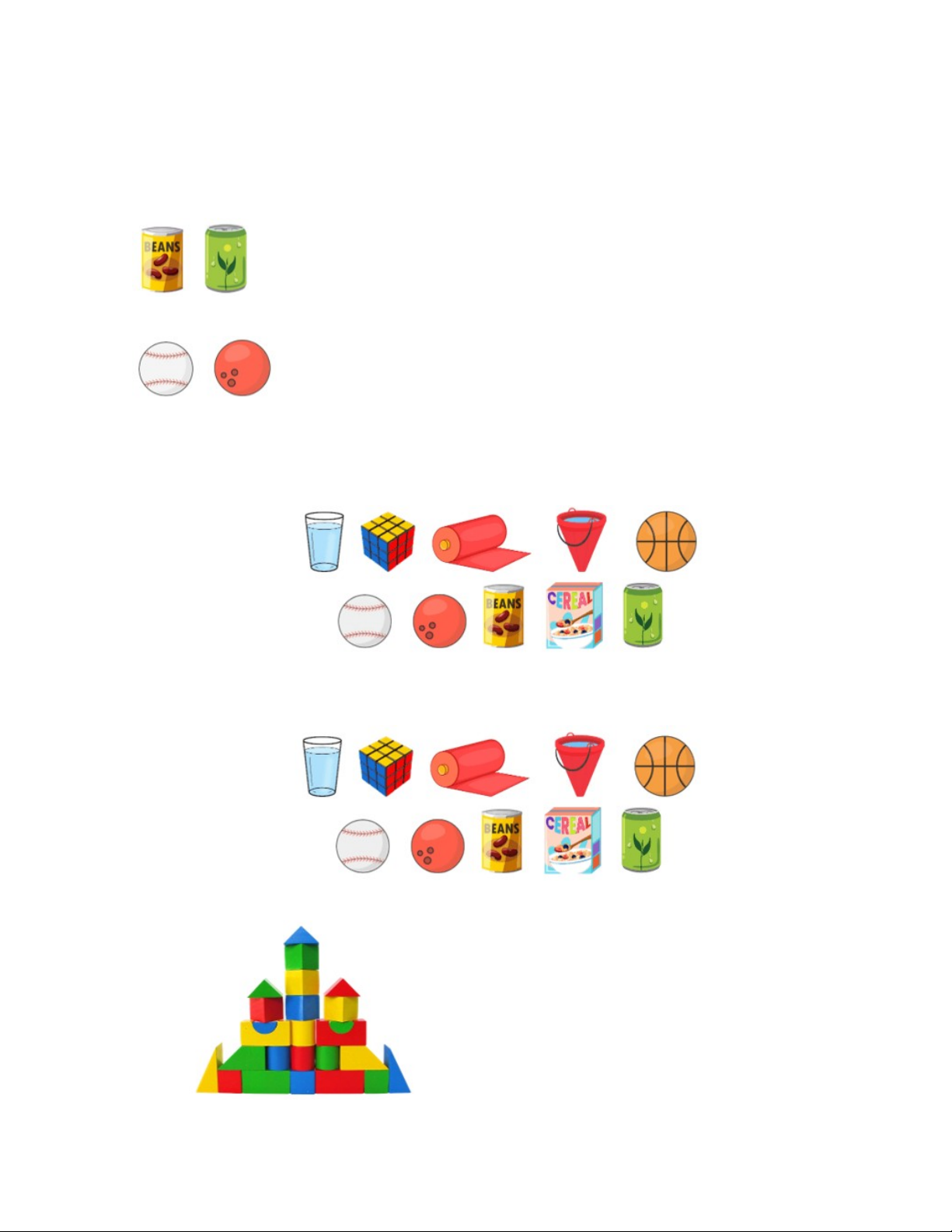 Bài 7. Khoanh tròn vào các đồ vật không có dạng khối cầu và khối trụ