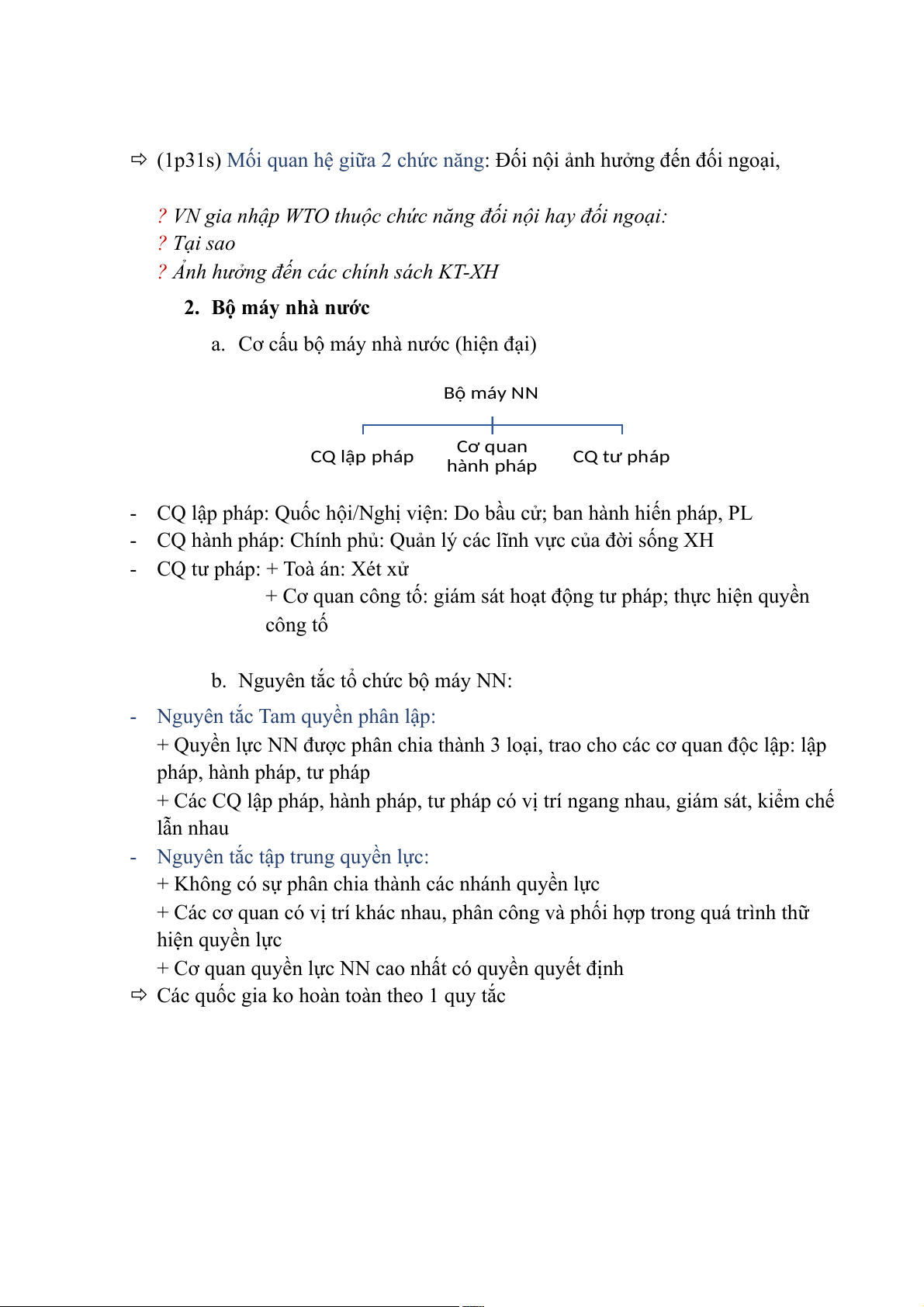 + Quyền lực NN được phân chia thành 3 loại, trao cho các cơ quan độc lập: lập pháp, hành pháp, tư pháp