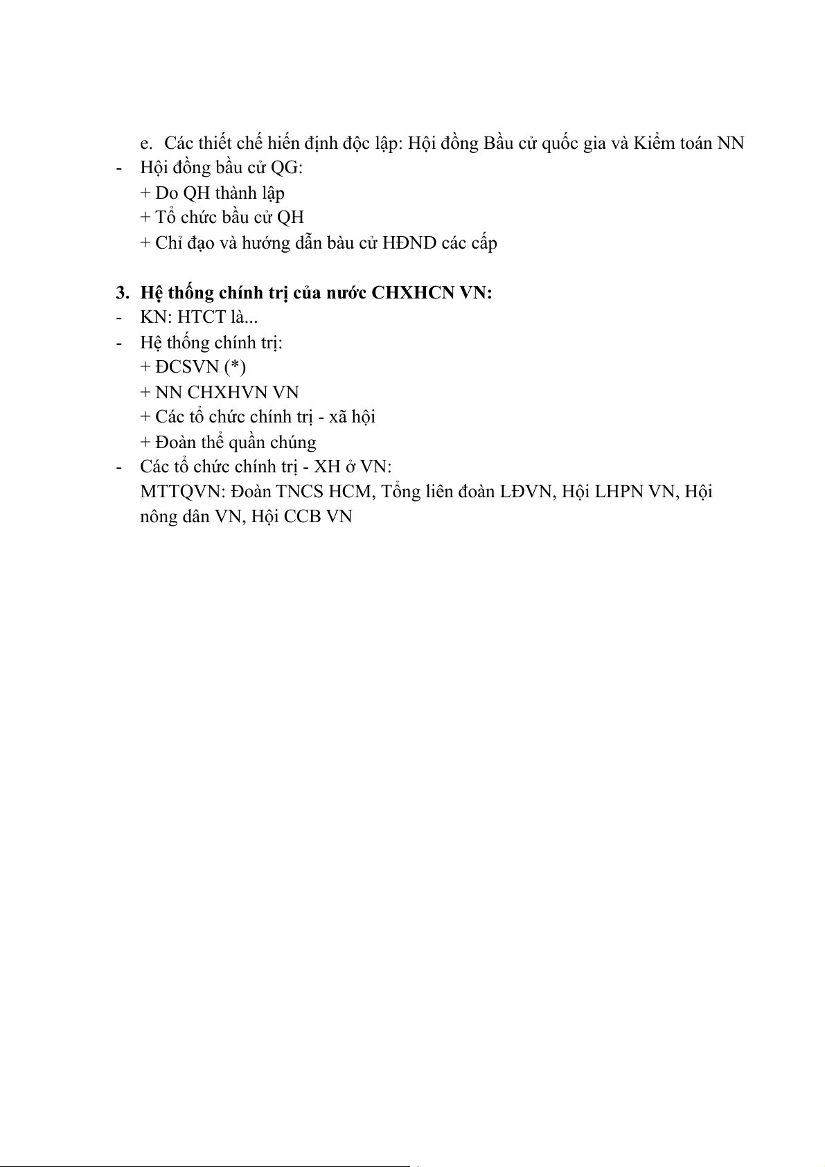 - CQ lập pháp: Quốc hội/Nghị viện: Do bầu cử; ban hành hiến pháp, PL