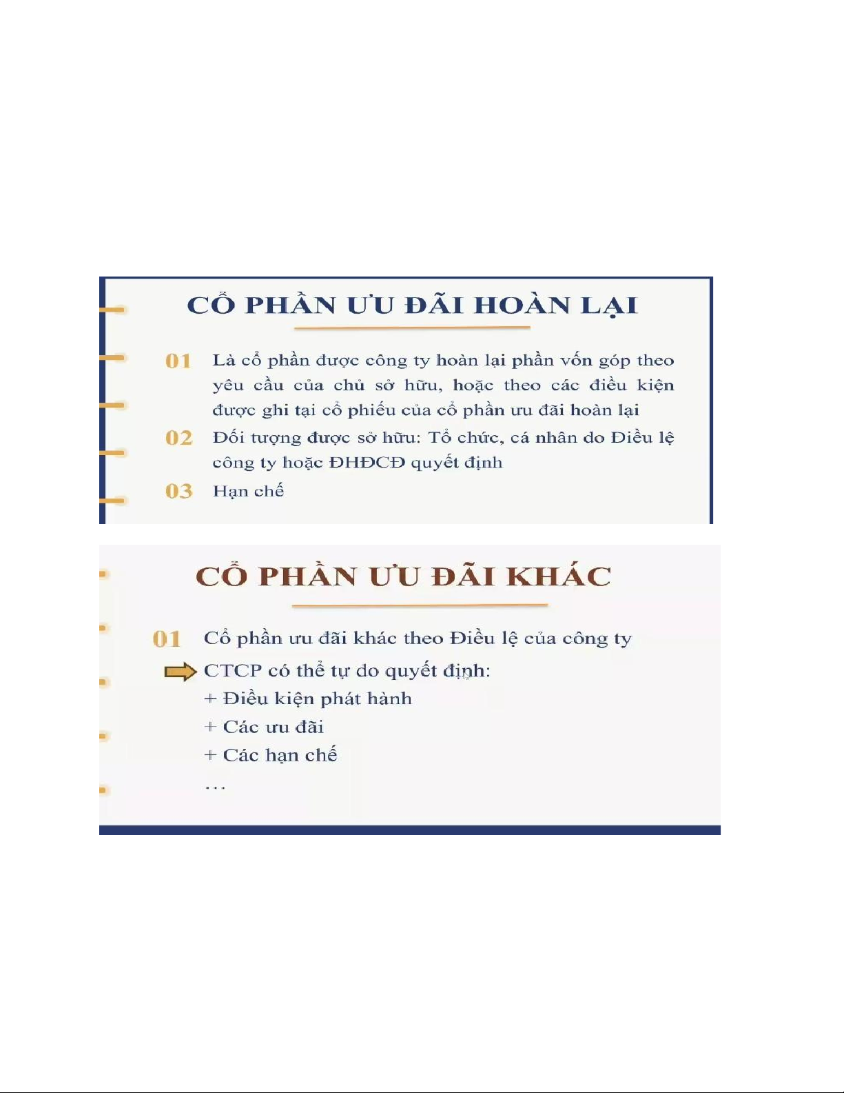biểu quyết, cổ phần ưu đãi cổ tức, cổ phần ưu đãi hoàn lại, cổ phần ưu đãi