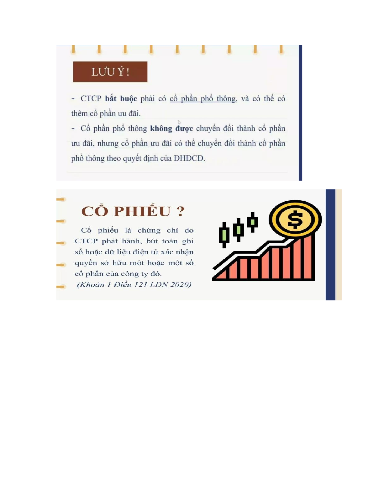 - Cổ phần là một phần vốn điều lệ của công ty: Mỗi phần phải thể hiện một