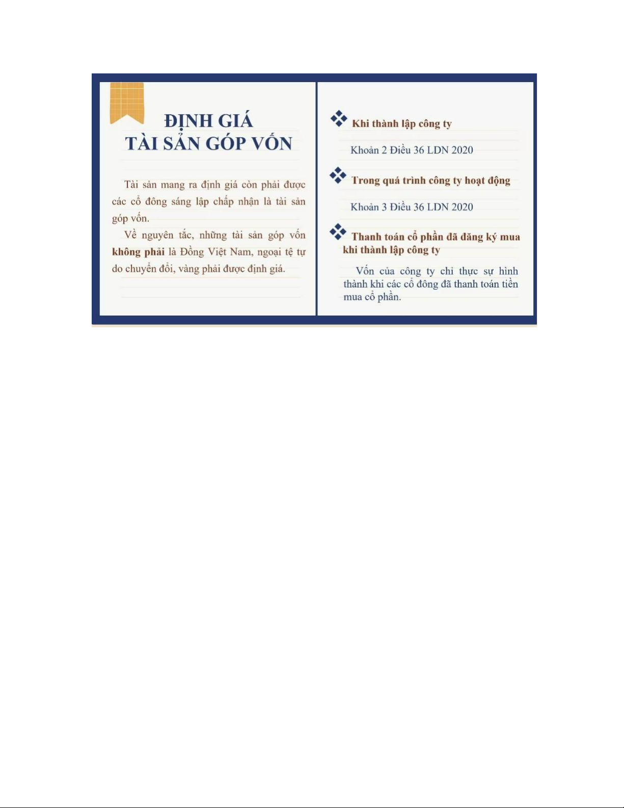 không được dự địa hội đồng cổ đông,… lOMoAR cPSD| 61630936 lOMoAR cPSD| 61630936 2.1. TÀI SẢN GÓP VỐN :