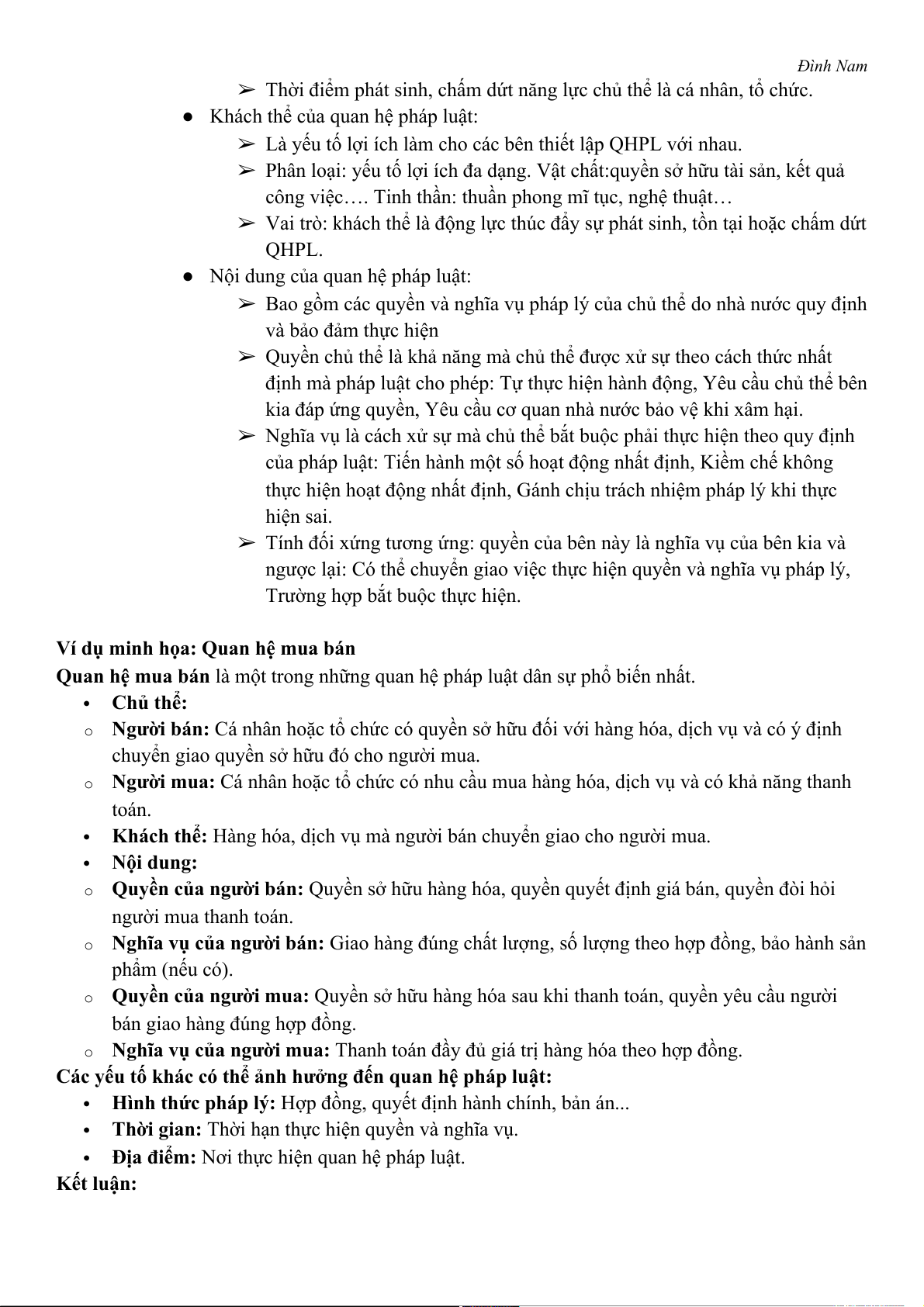 Địa điểm: Nơi thực hiện quan hệ pháp luật. Kết luận: Đình Nam