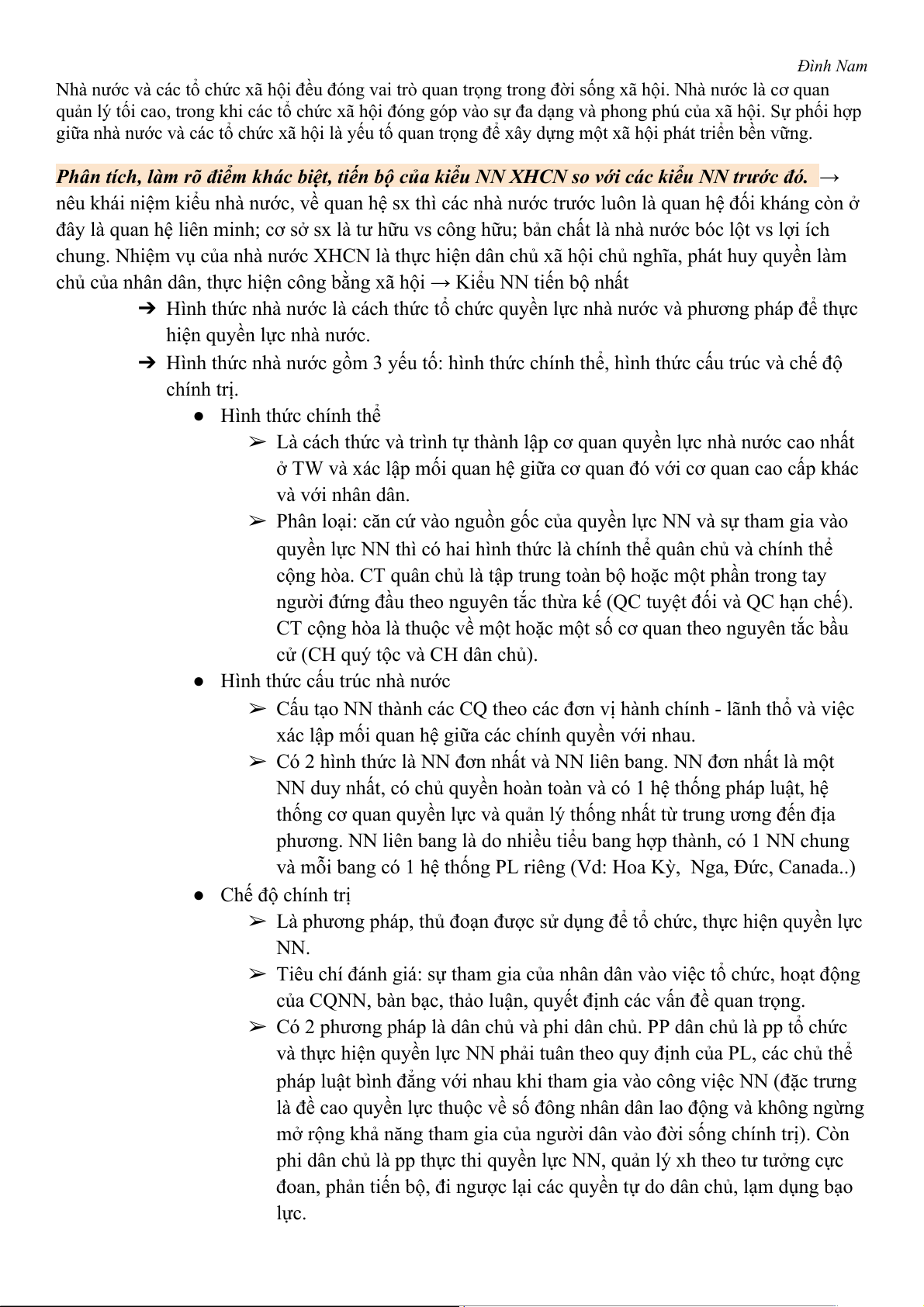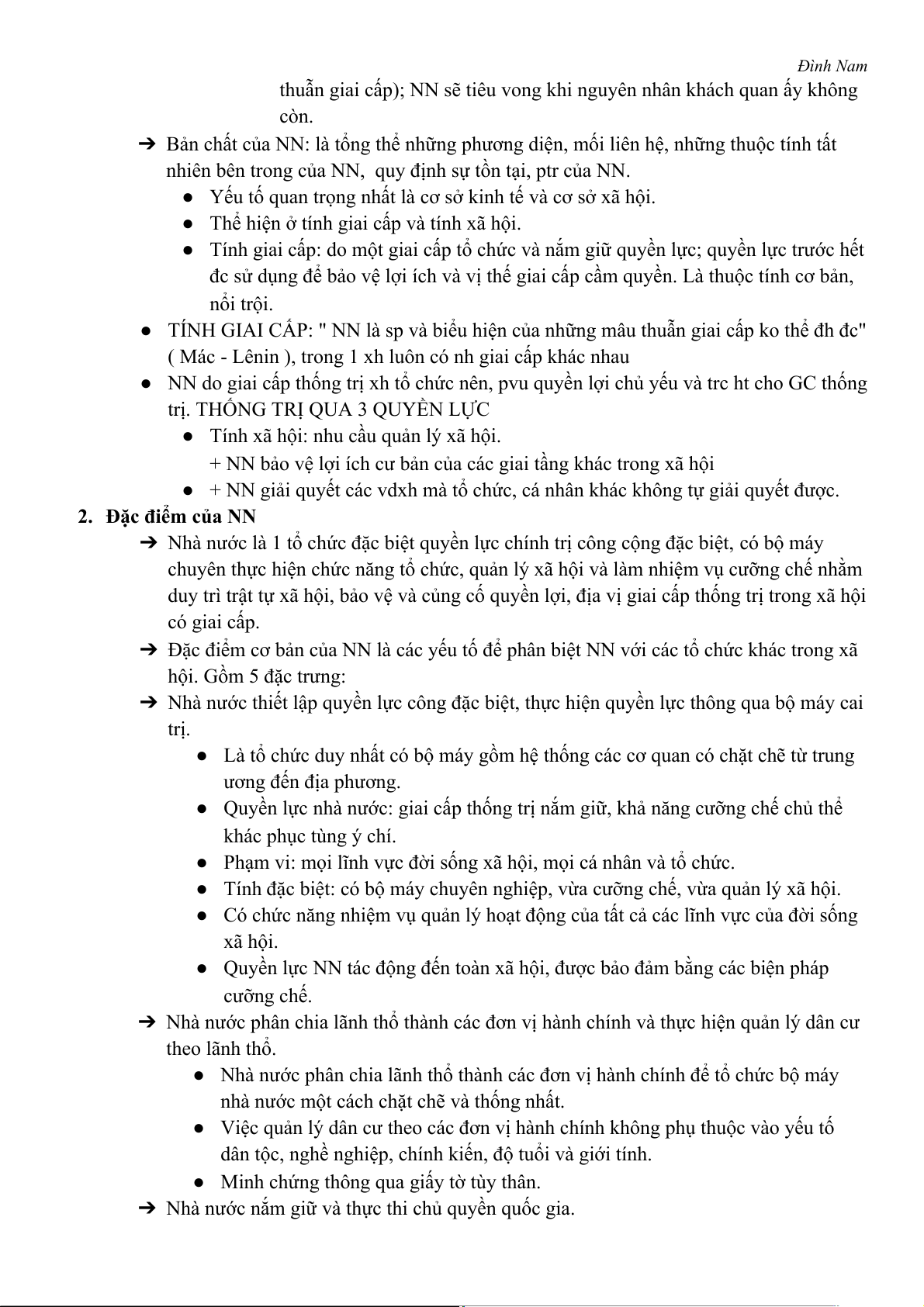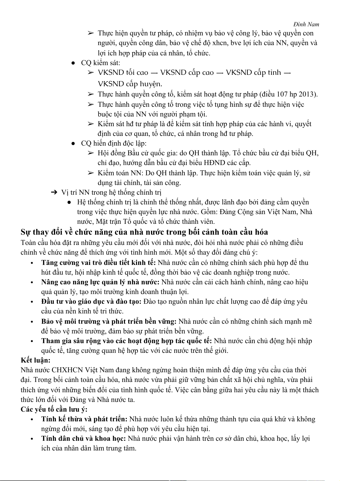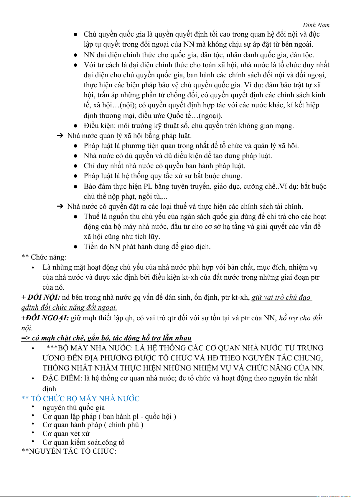 ➔ Nhà nước nắm giữ và thực thi chủ quyền quốc gia. Đình Nam