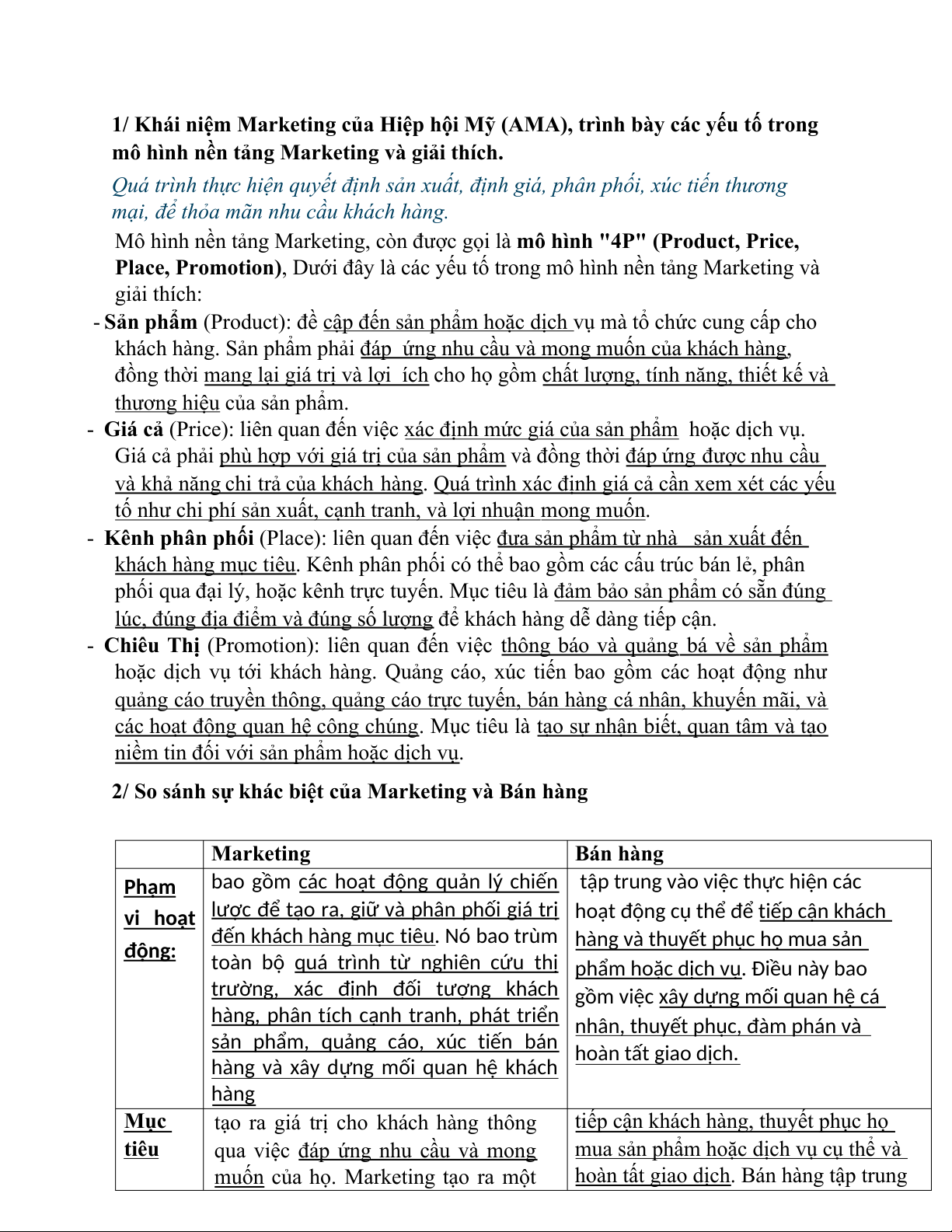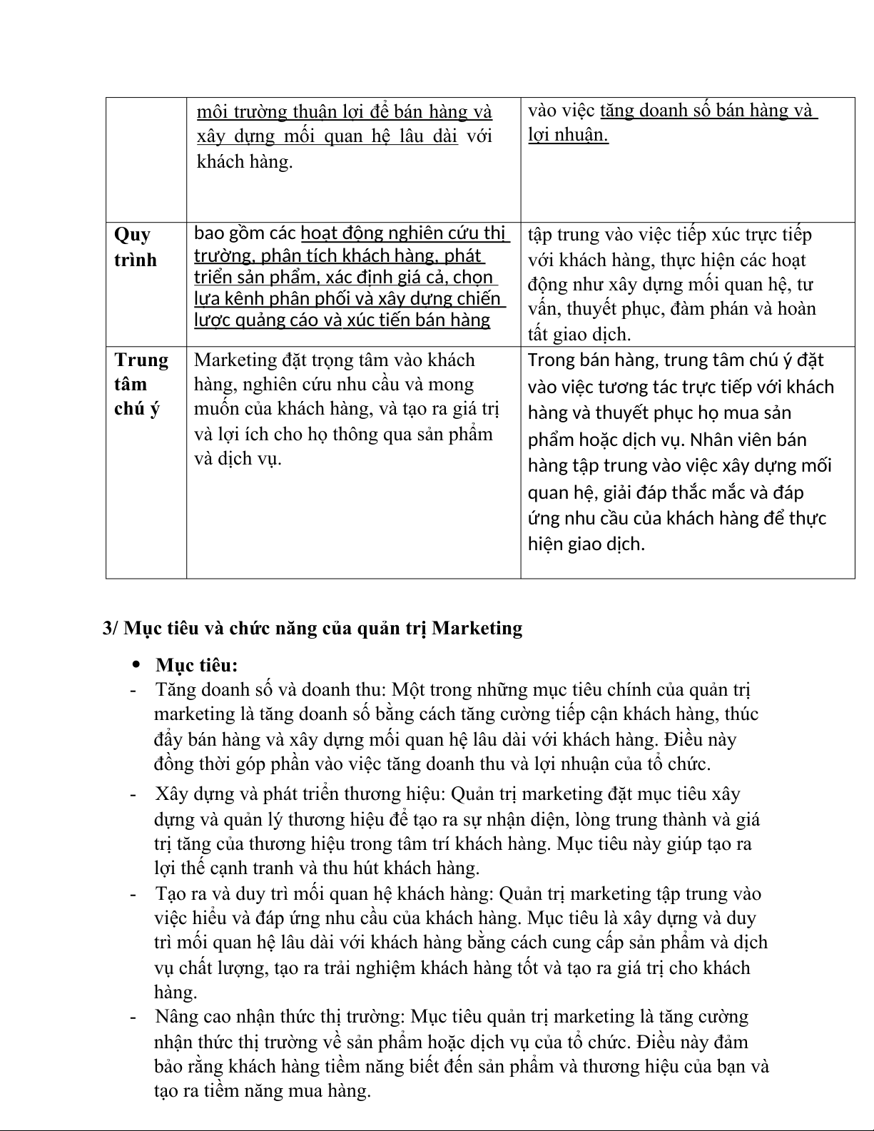 2/ So sánh sự khác biệt của Marketing và Bán hàng Marketing Bán hàng Phạm bao gồm các hoạt động quản lý chiến