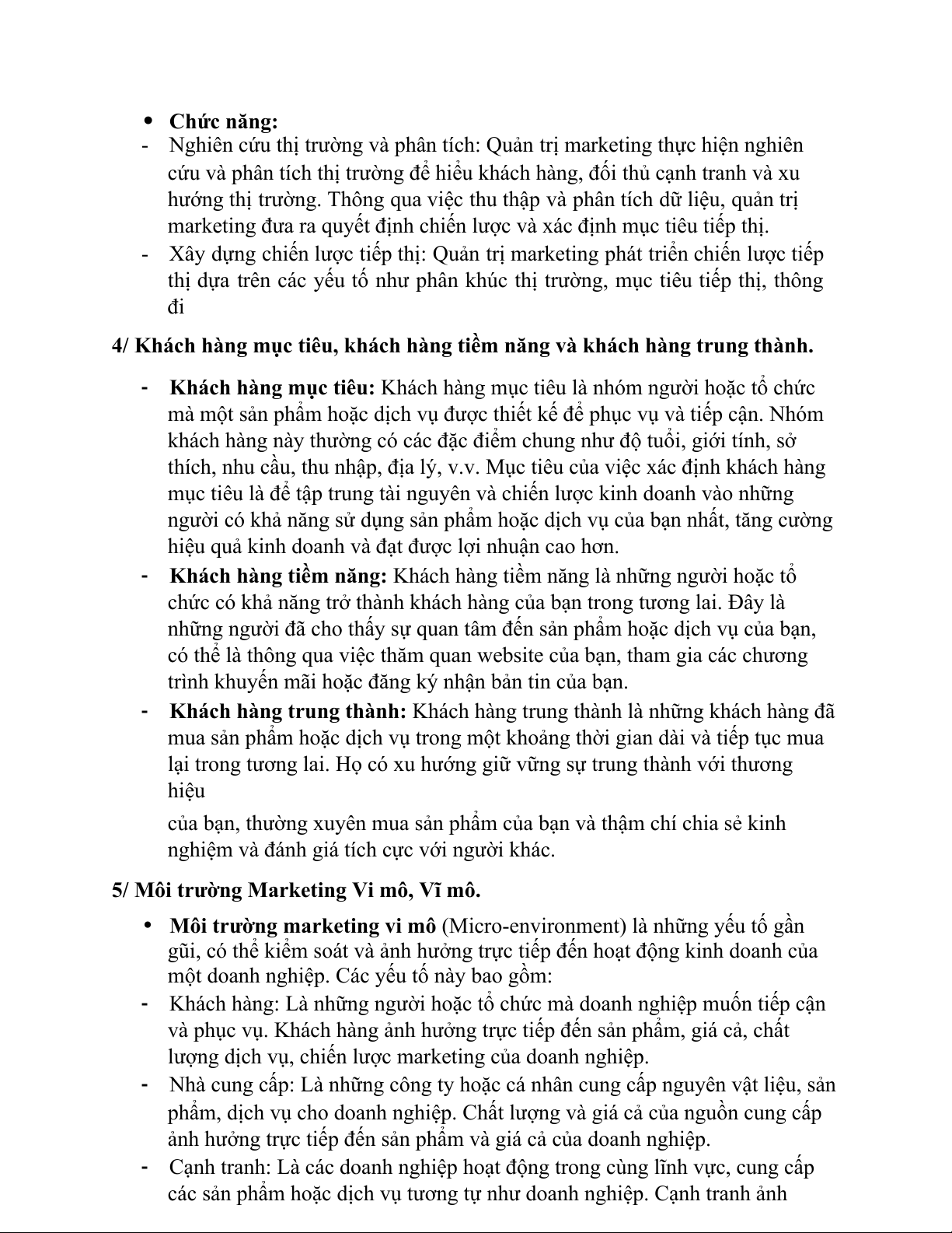 5/ Môi trường Marketing Vi mô, Vĩ mô.