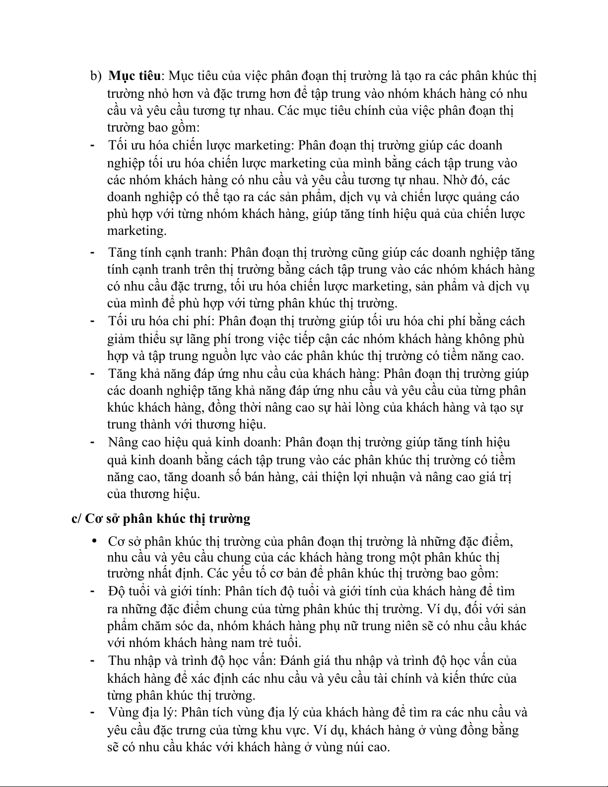 thị dựa trên các yếu tố như phân khúc thị trường, mục tiêu tiếp thị, thông đi