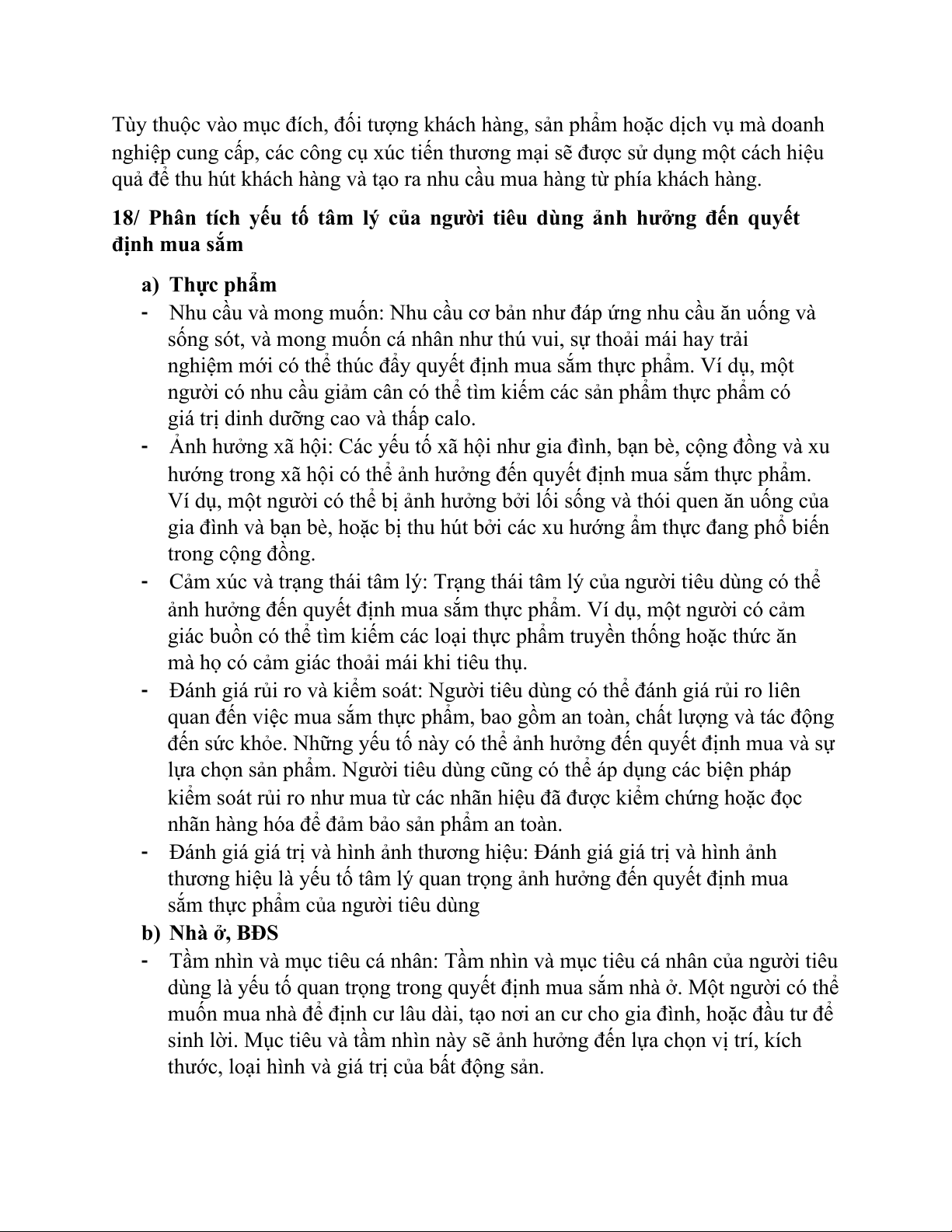18/ Phân tích yếu tố tâm lý của người tiêu dùng ảnh hưởng đến quyết định mua sắm a) Thực phẩm -