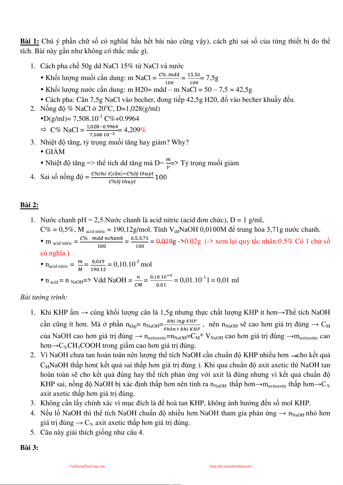 1. Khi KHP ẩm → cùng khối lượng cân là 1,5g nhưng thực chất lượng KHP ít hơn→Thể tích NaOH