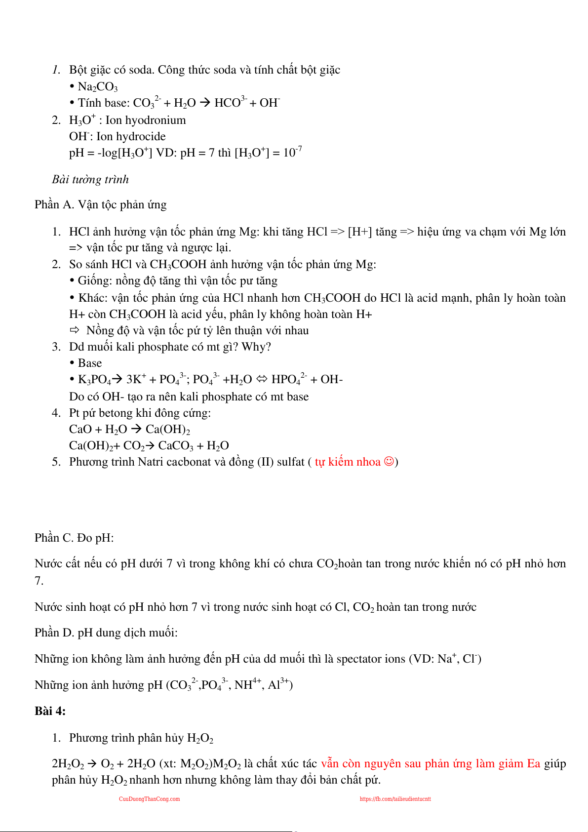 phân hủy H2O2 nhanh hơn nhưng không làm thay đổi bản chất pứ. CuuDuongThanCong.com