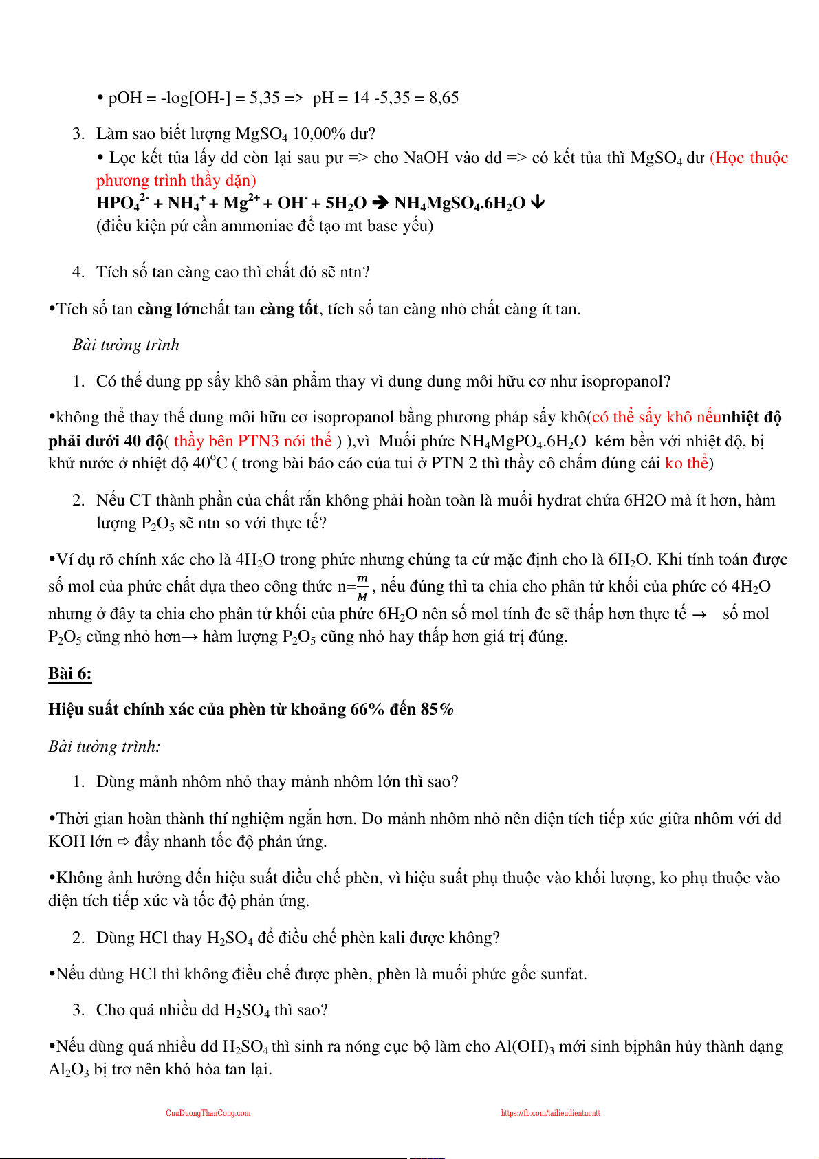 P2O5 cũng nhỏ hơn→ hàm lượng P2O5 cũng nhỏ hay thấp hơn giá trị đúng. Bài 6: