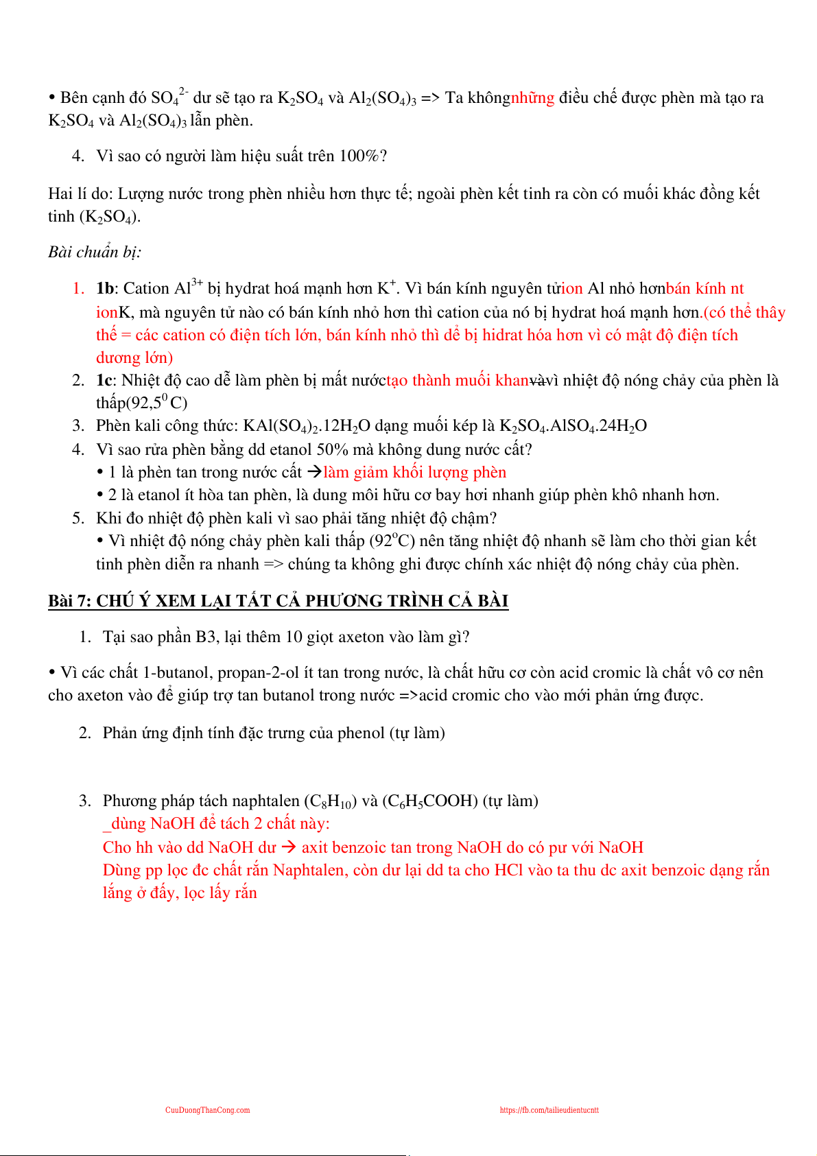 4. Vì sao rửa phèn bằng dd etanol 50% mà không dung nước cất?