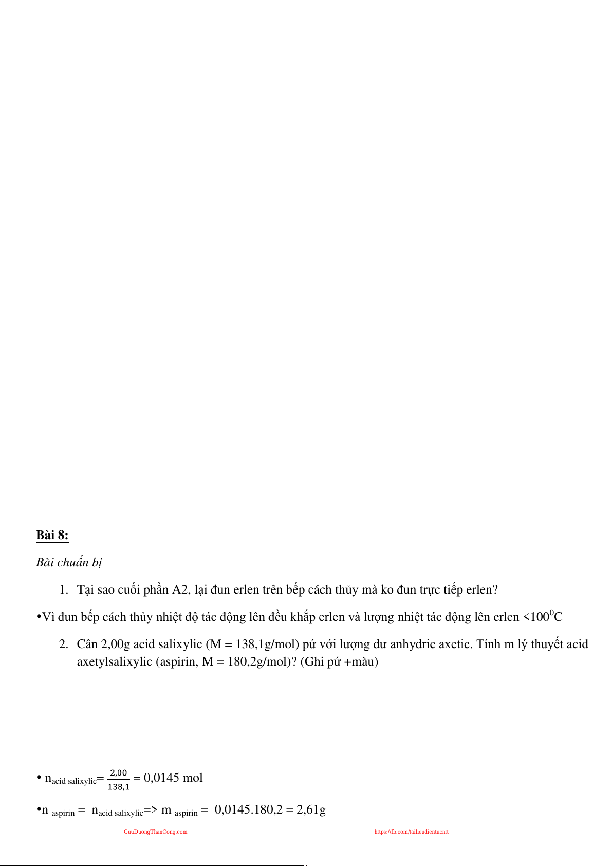 axetylsalixylic (aspirin, M = 180,2g/mol)? (Ghi pứ +màu) nacid salixylic= = 0,0145 mol