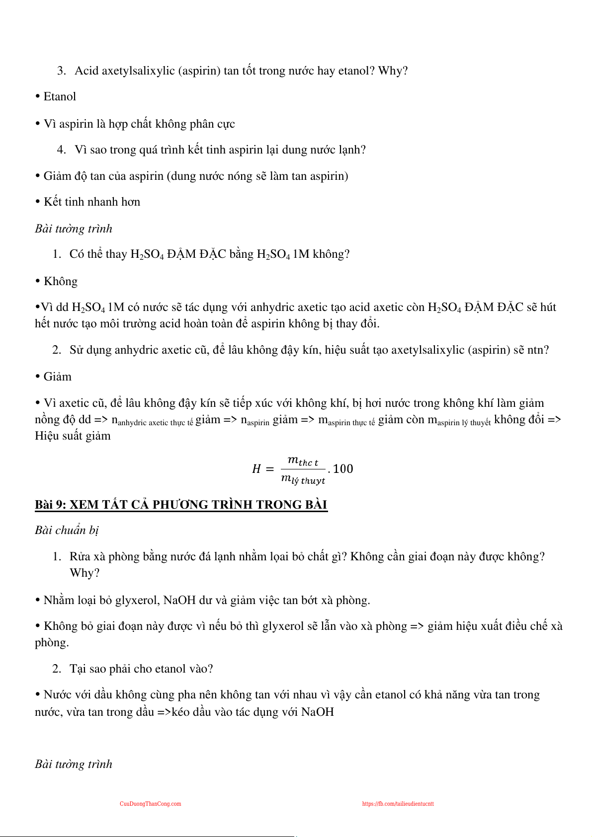 3. Acid axetylsalixylic (aspirin) tan tốt trong nước hay etanol? Why? Etanol