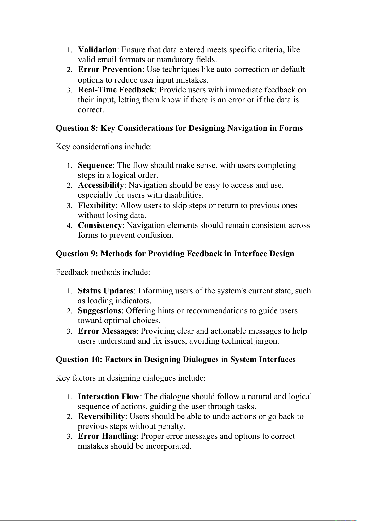 Question 10: Factors in Designing Dialogues in System Interfaces