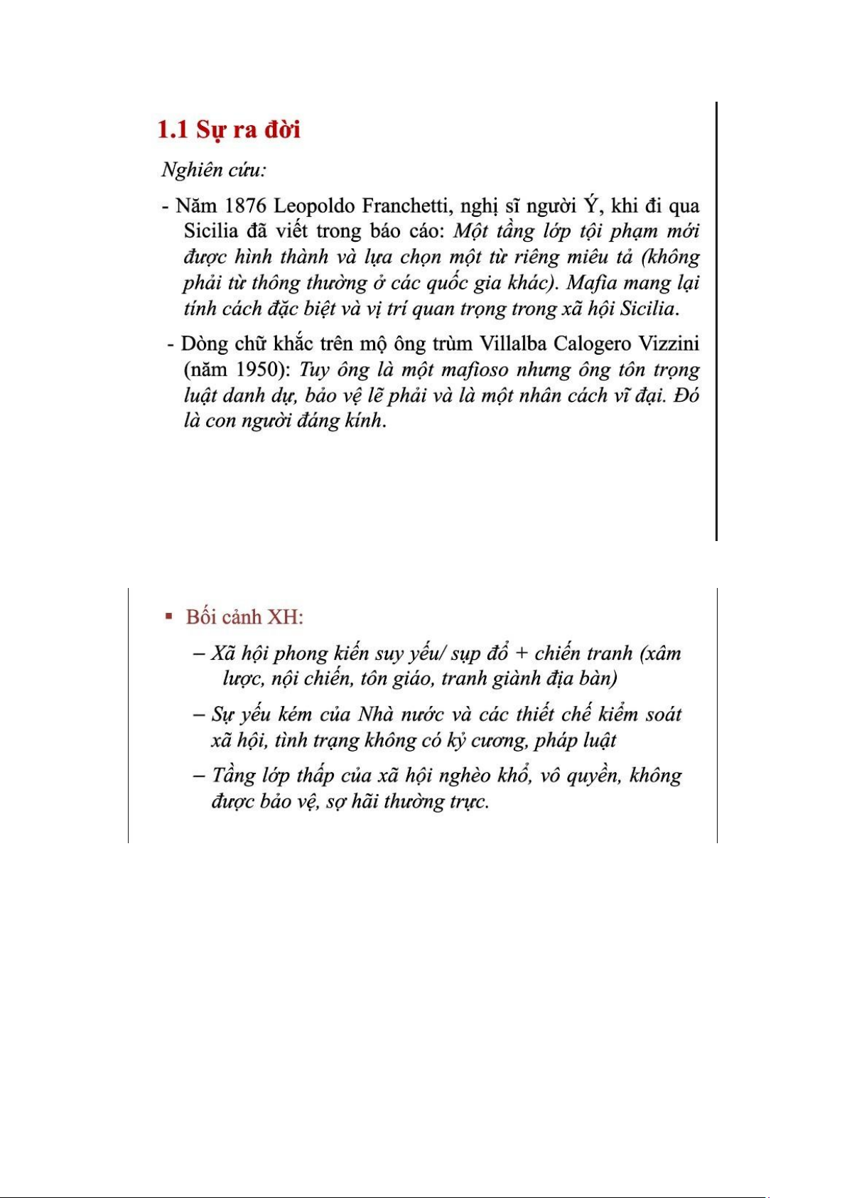 1. Sự ra đời của tổ chức tội phạm Mafia Ý 1.1. Sự ra đời