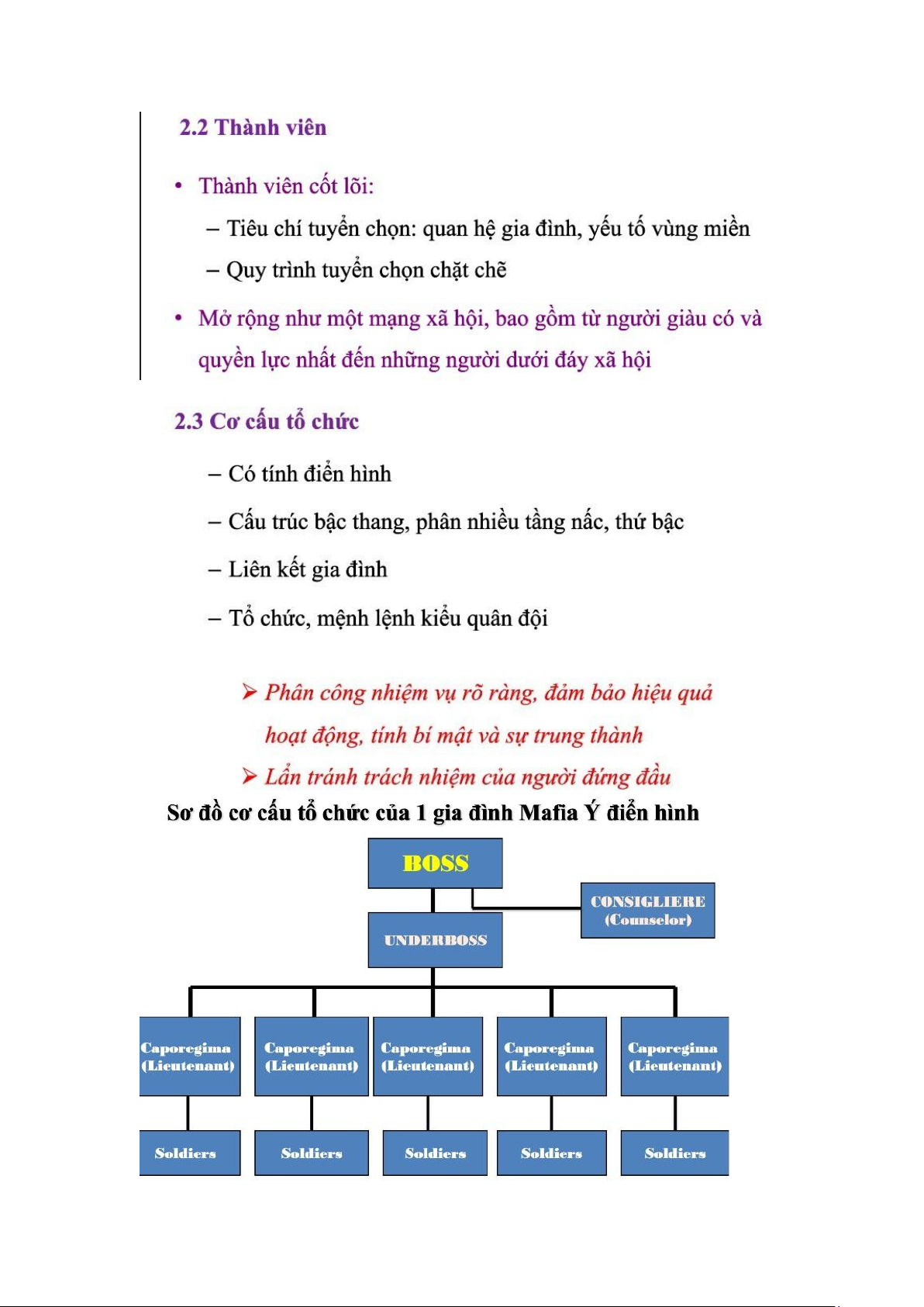 4. Phân tích đặc điểm về cơ cấu tổ chức Mafia Ý