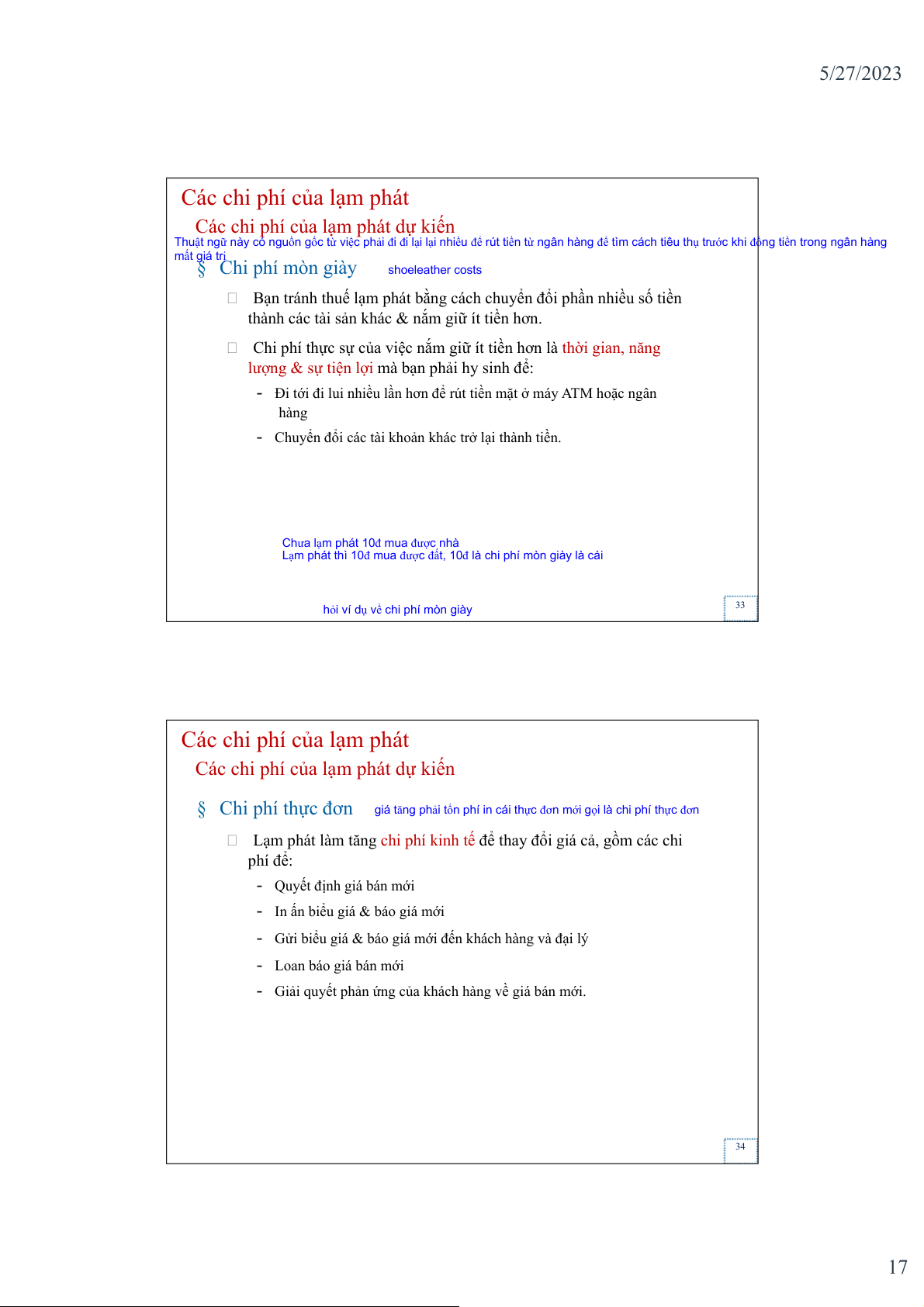 đ ng tiền trong ngân hàng mất giá trị § Chi phí mòn giày shoeleather costs