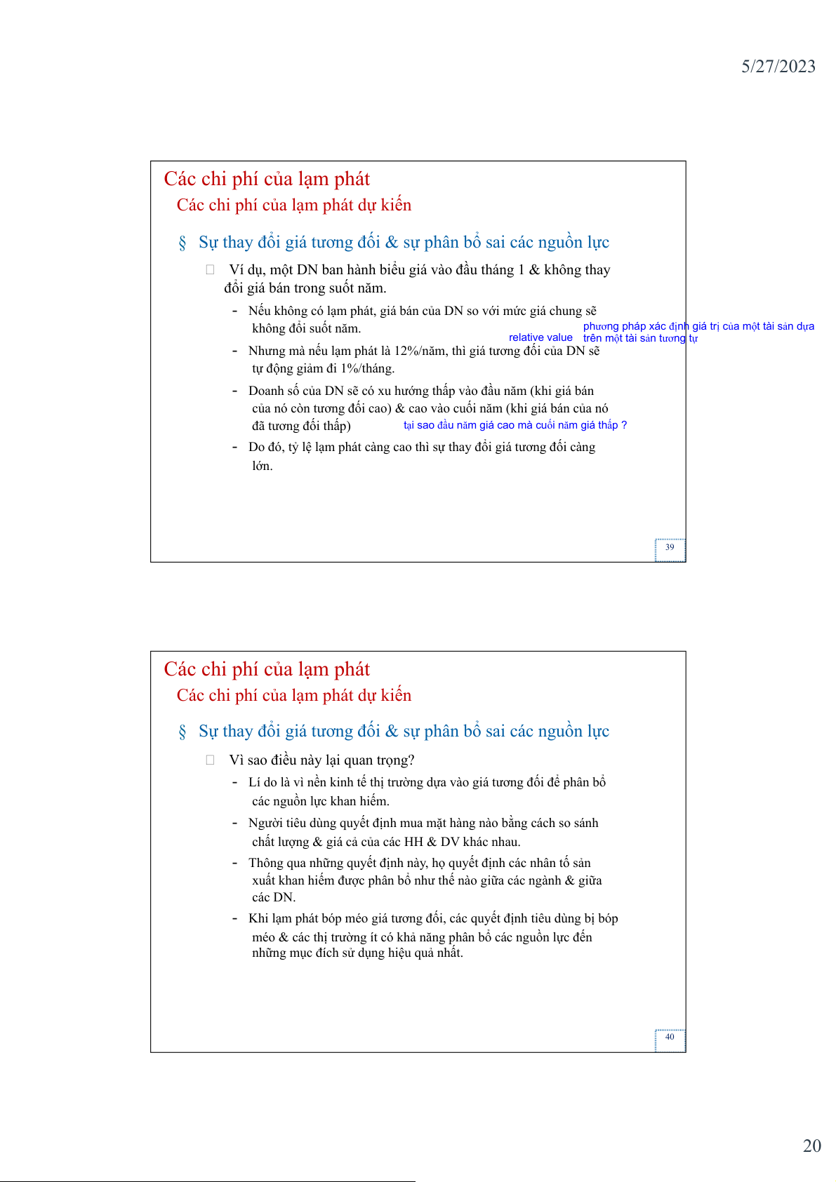 - Do đó, tỷ lệ lạm phát càng cao thì sự thay đổi giá tương đối càng lớn. 39