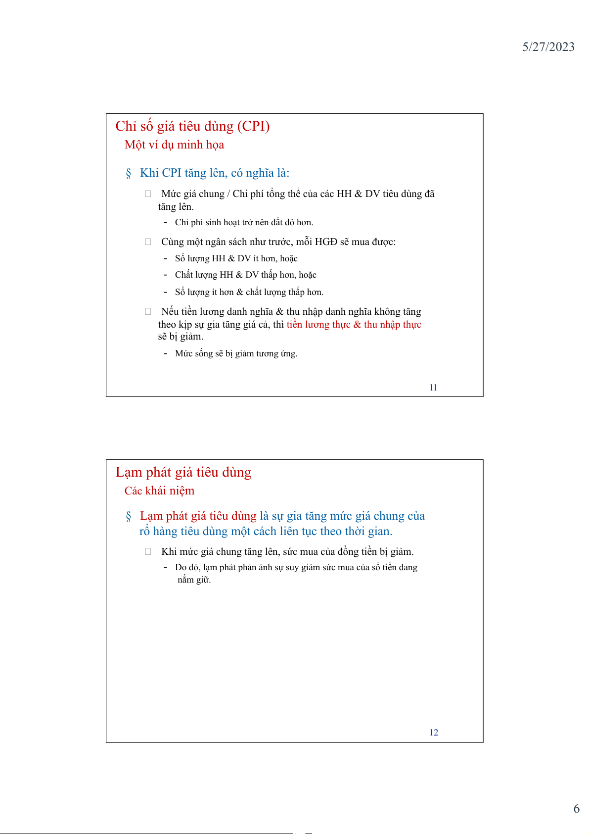 - Do đó, lạm phát phản ánh sự suy giảm sức mua của số tiền đang nắm giữ. 12 6 5/27/2023 Lạm phát giá tiêu dùng Các khái niệm