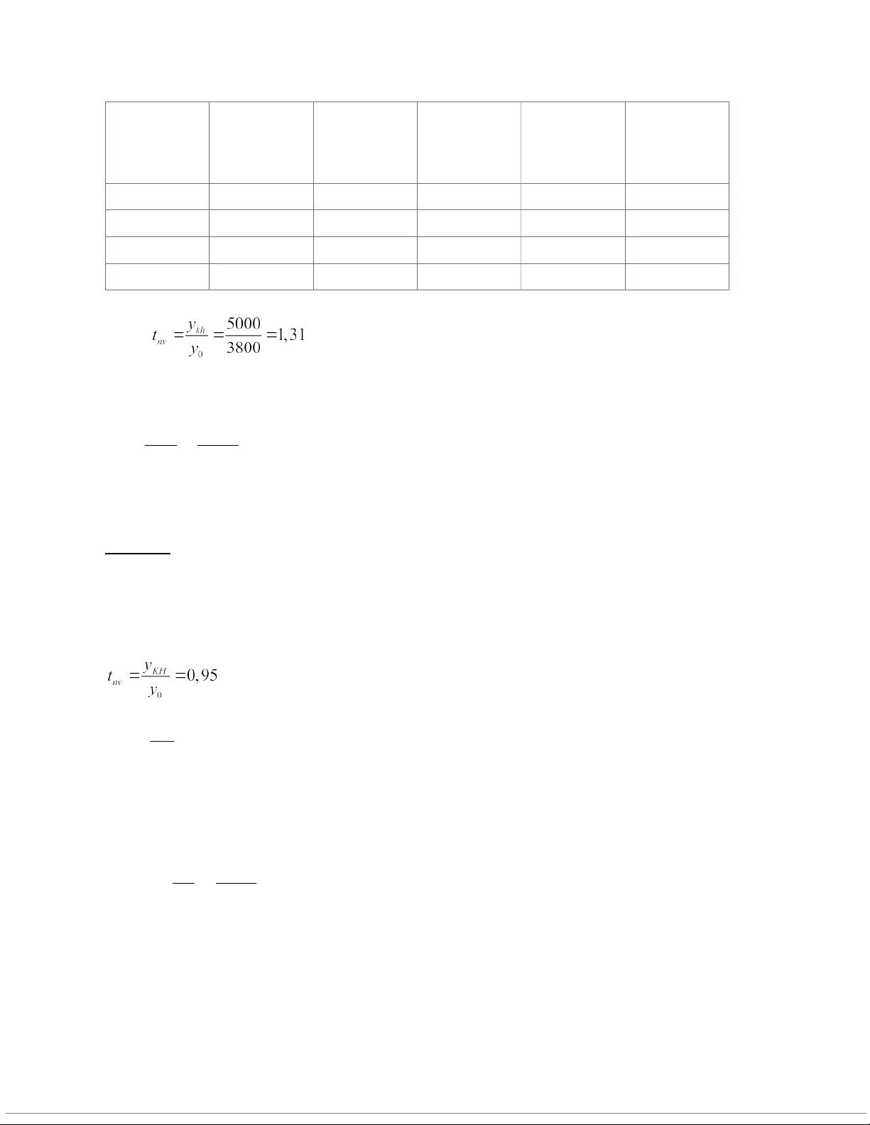 Theo yêu cầu của bài toán, chúng ta chỉ tính: tnv , tht Tên cửa Thực tế Kế hoạch Thực tế Số tương Số tương quý I quý II quý II đối NVKH đối HTKH hàng y / y 1 0 1 900 1000 1000 1,1 1 2 1300 1500 1800 1.15 1,2 3 1600 2500 2075 1.5625 0,83 Công ty 3800 5000 4875 1,31 0,975 Ta có
