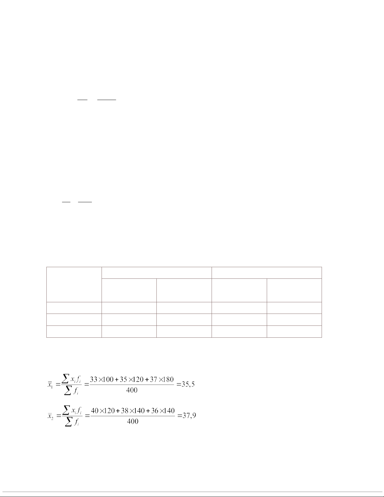 Vậy trong kỳ nghiên cứu xí nghiệp đã không hoàn thành kế hoạch đặt ra về chỉ tiêu số lượng là 3%. Bài 3.4: Vụ hè thu Vụ đông xuân Tên Năng suất Diện tích Năng suất Diện tích Hợp tác xã (tạ/ha) (ha) (tạ/ha) (ha) A 33 100 40 120 B 35 120 38 140 C 37 180 36 140 1.