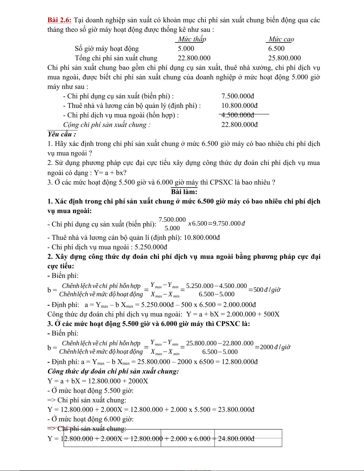 3. Ở các mức hoạt động 5.500 giờ và 6.000 giờ máy thì CPSXC là bao nhiêu ? Bài làm: