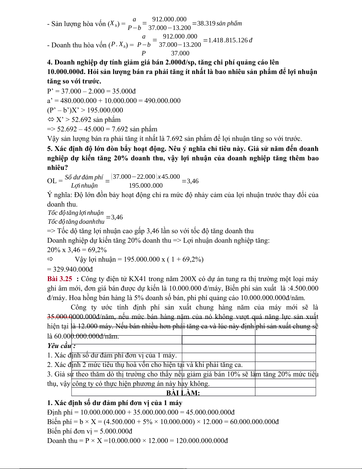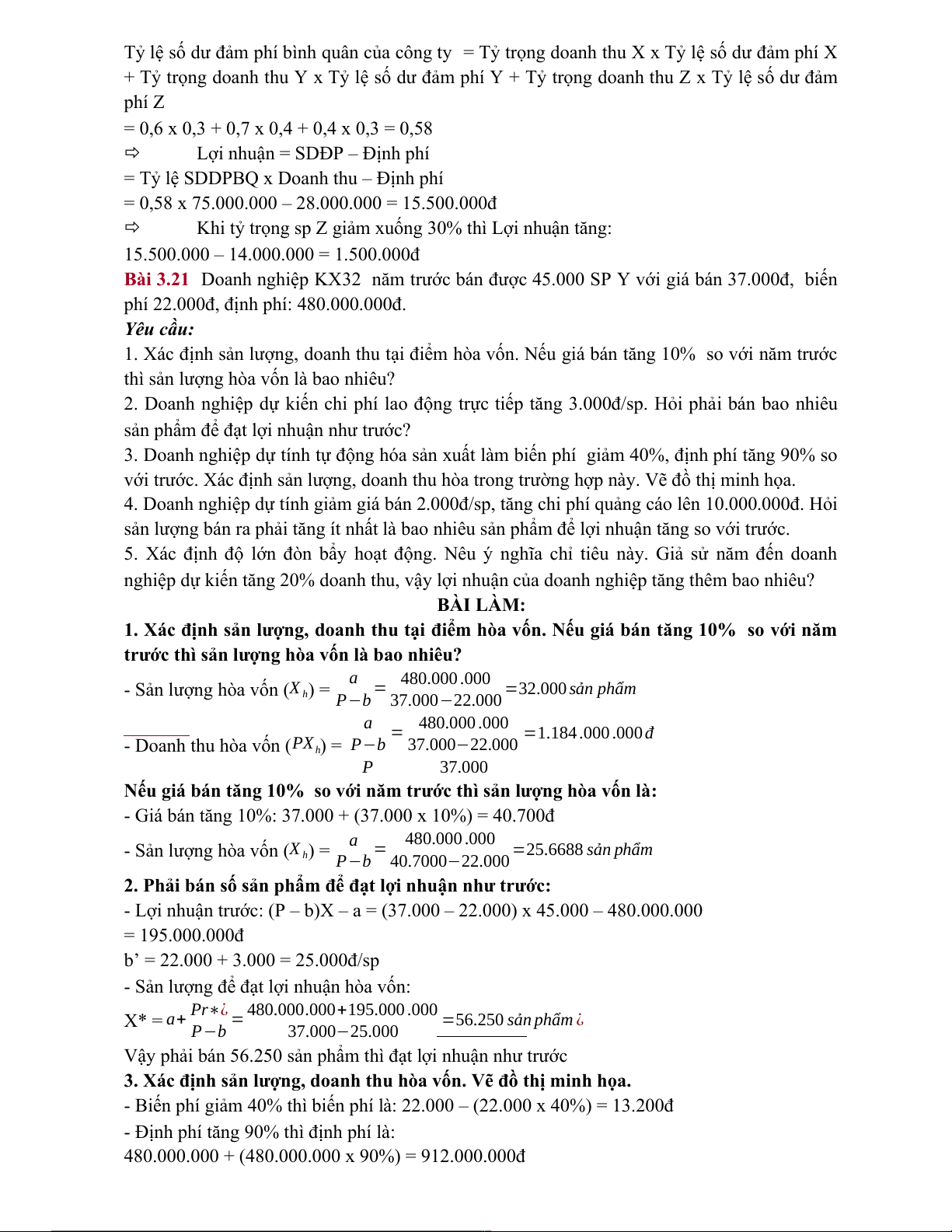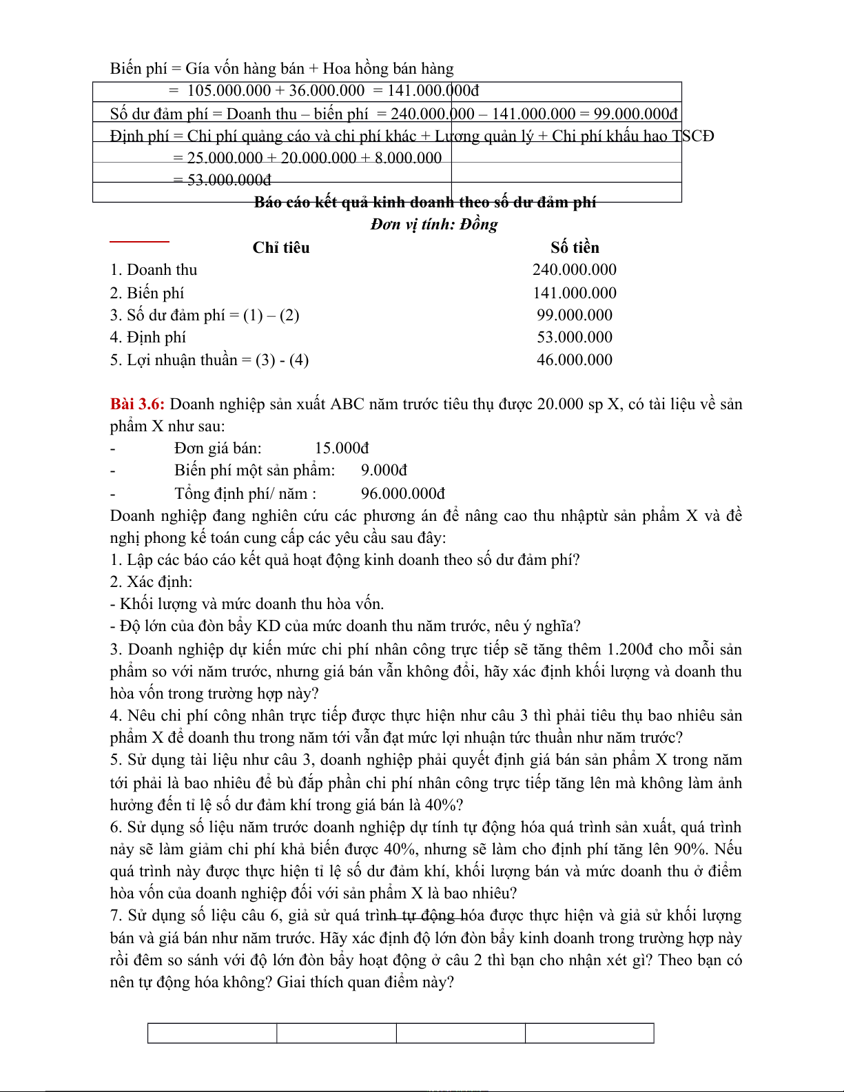 Bài 3.6: Doanh nghiệp sản xuất ABC năm trước tiêu thụ được 20.000 sp X, có tài liệu về sản phẩm X như sau: - Đơn giá bán: 15.000đ -