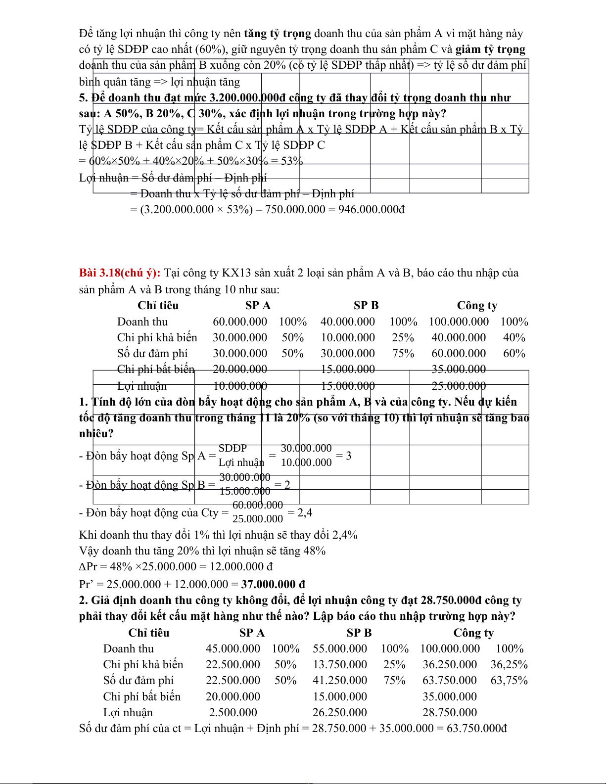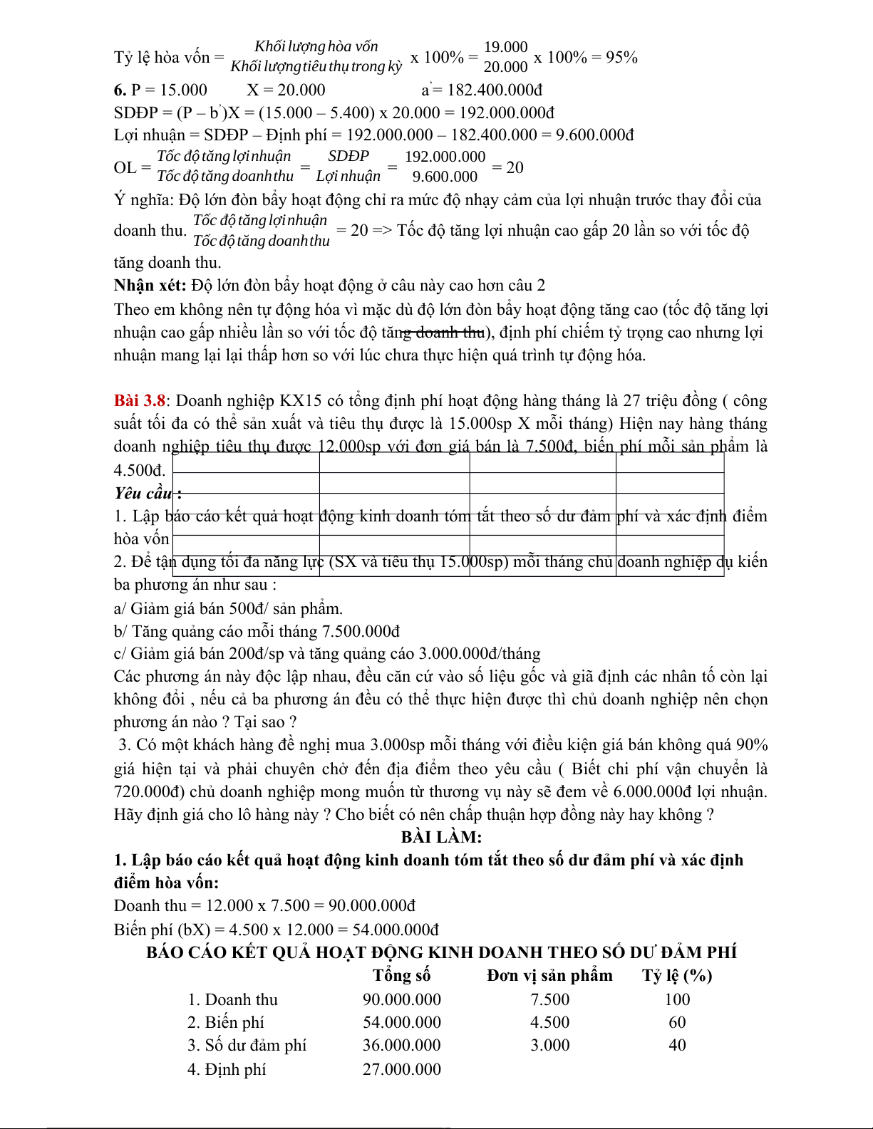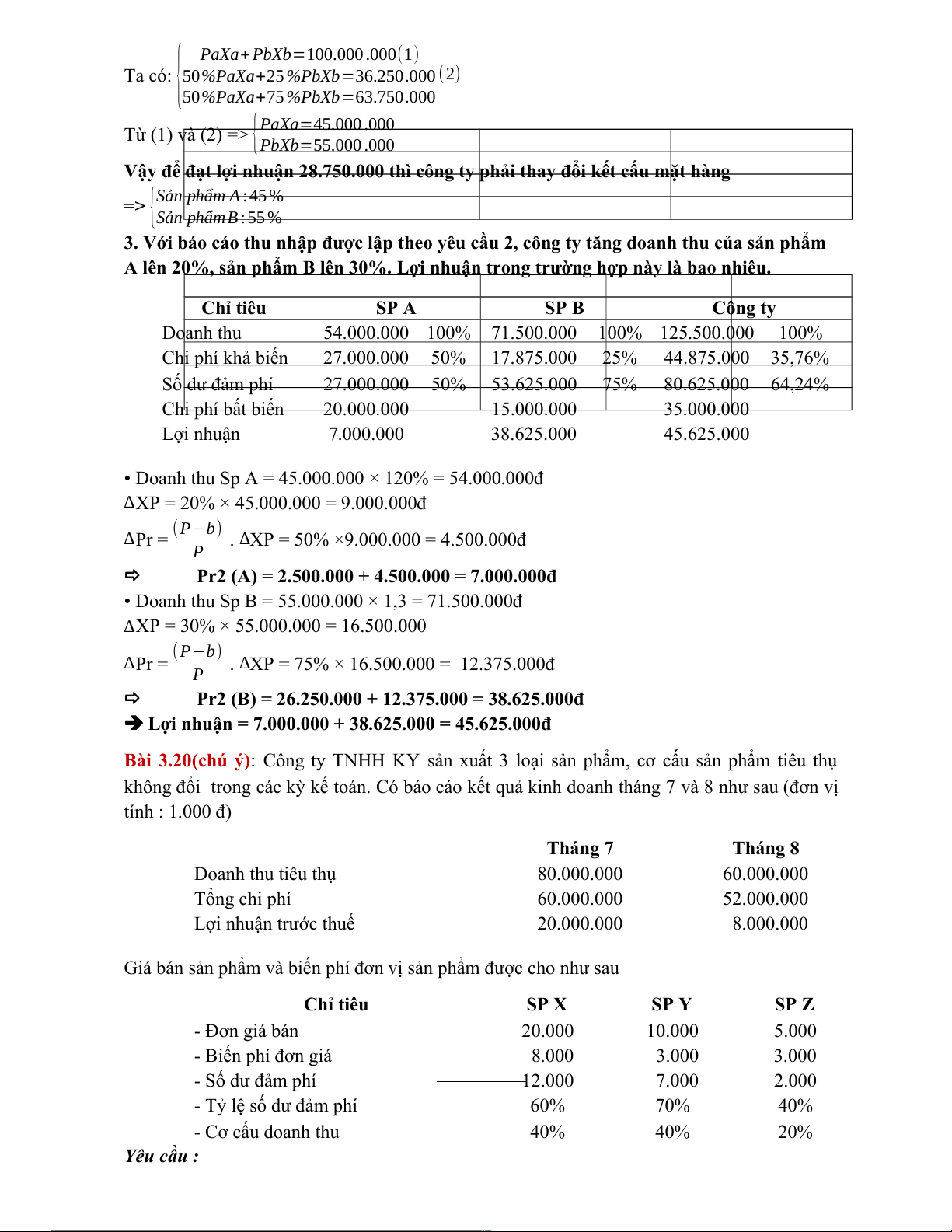 Bài 3.6: Doanh nghiệp sản xuất ABC năm trước tiêu thụ được 20.000 sp X, có tài liệu về sản phẩm X như sau: - Đơn giá bán: 15.000đ -