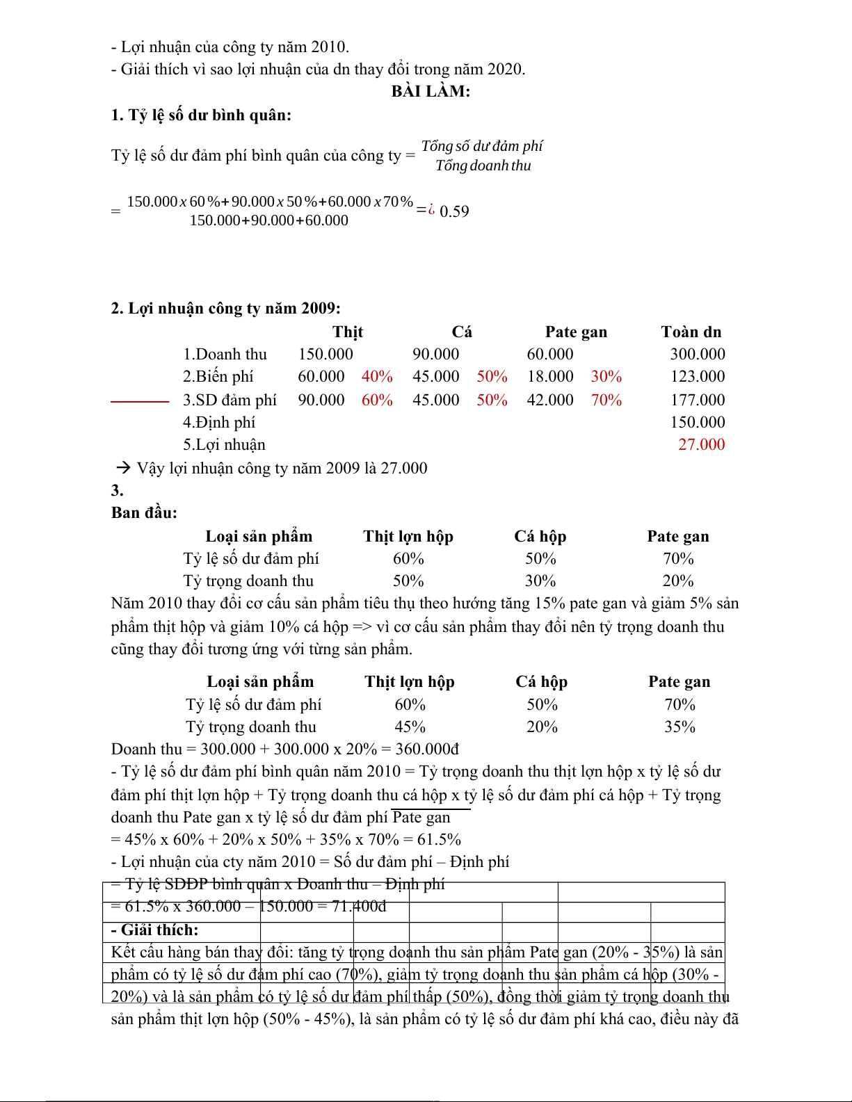 Pr = 120.000 – (50.000 + 50.000) = 20.000 đ/sp