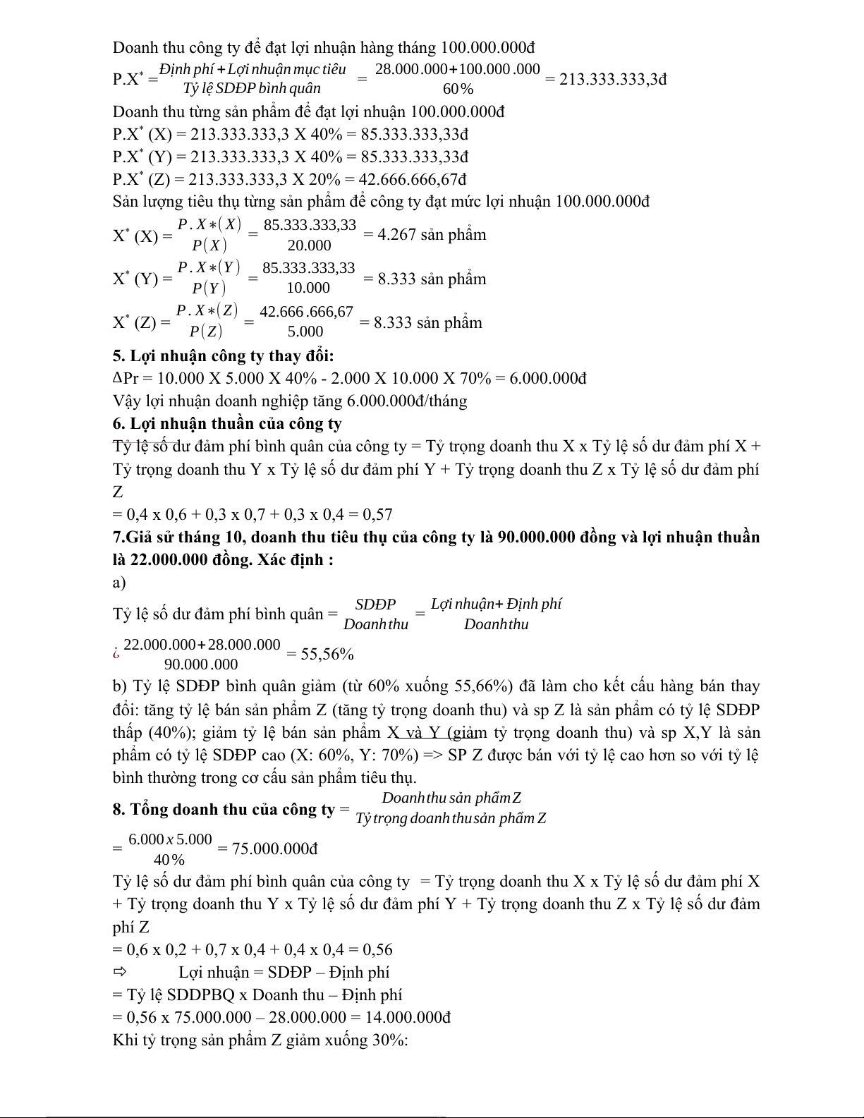 Biến phí đơn vị (b) = 60.000.000 +40.000 .000+ 20.000.000 +10.000.000 = 26.000đ/sp 5000 5000 5000 5000