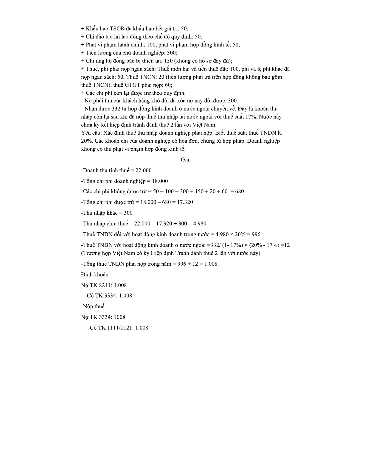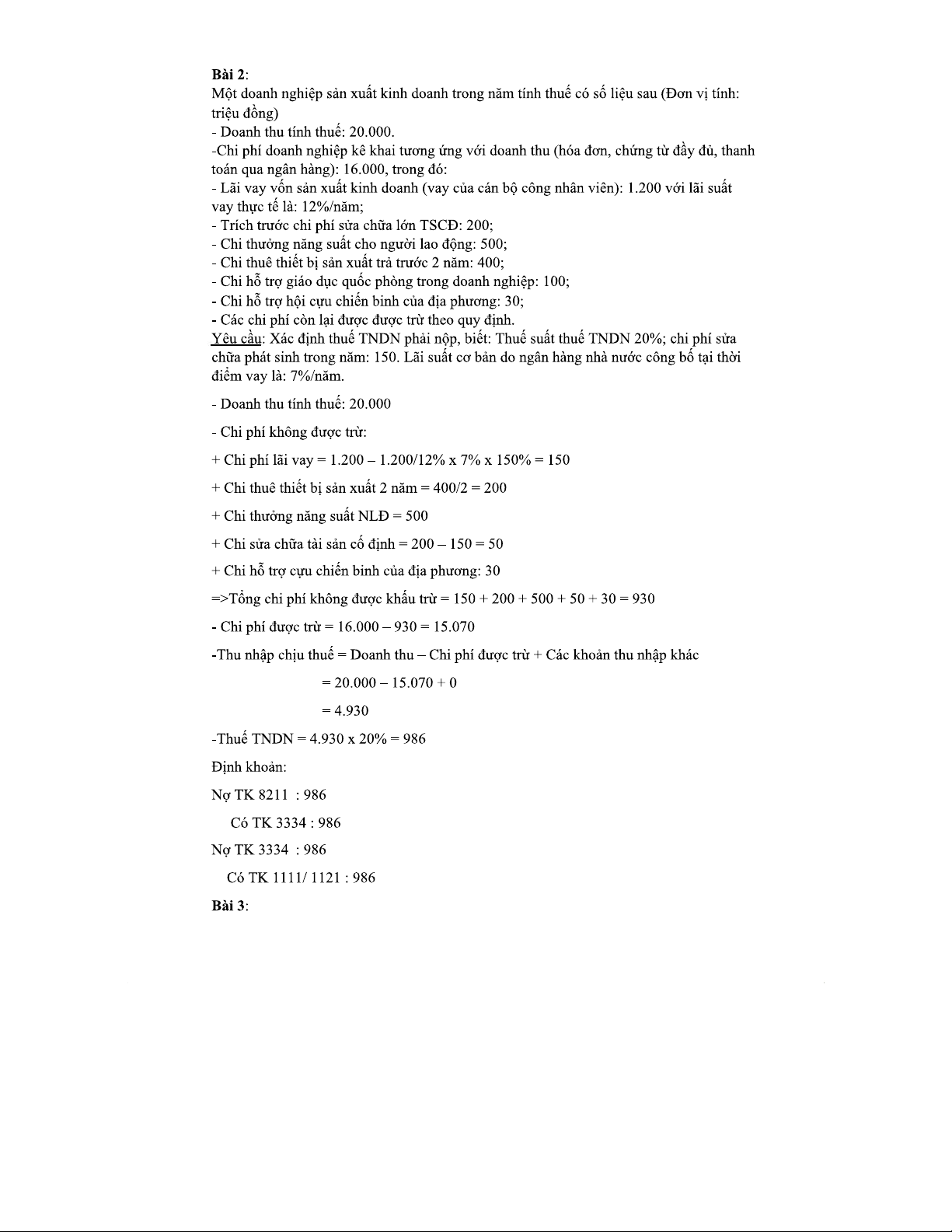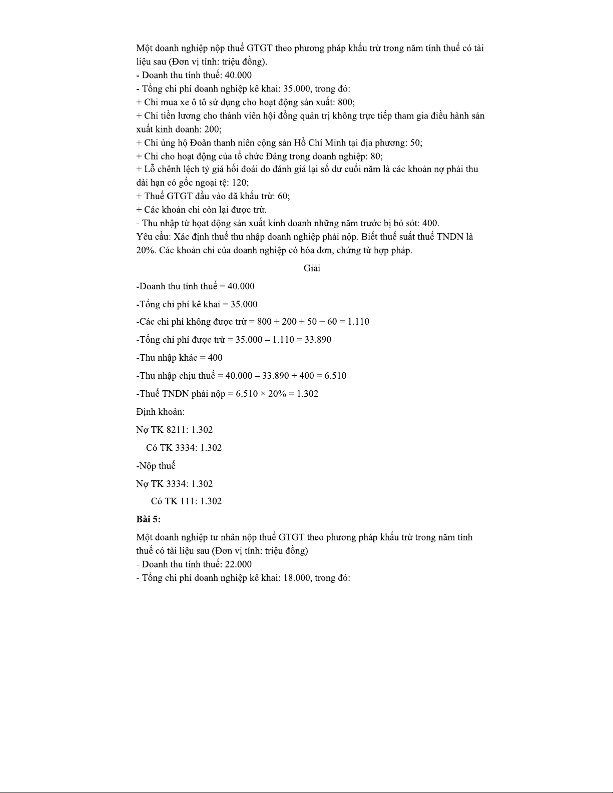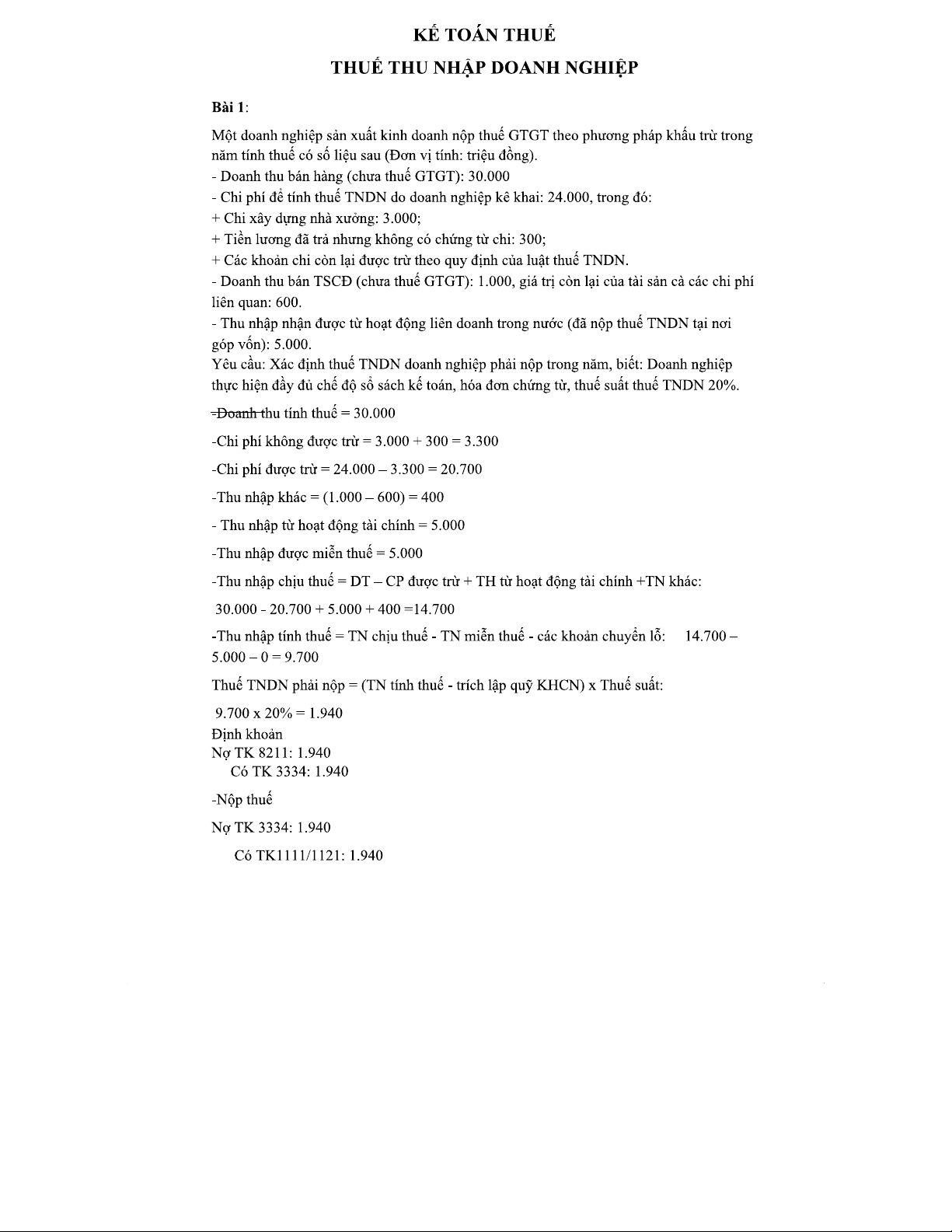 Giải Bài Tập Kế Toán Thuế TNDN: Phân Tích Chi Phí và Thuế Năm 2023