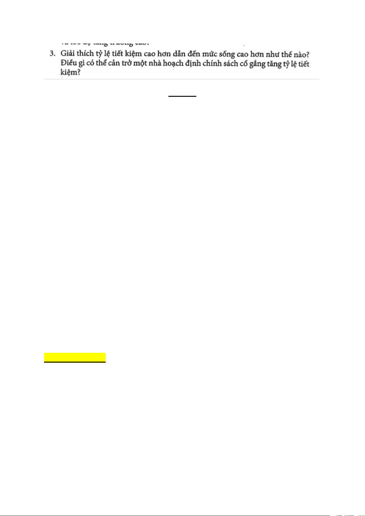 Câu 3 trang 285:Giải thích tỷ lệ tiết kiệm cao hơn dẫn đến mức sống cao hơn như
