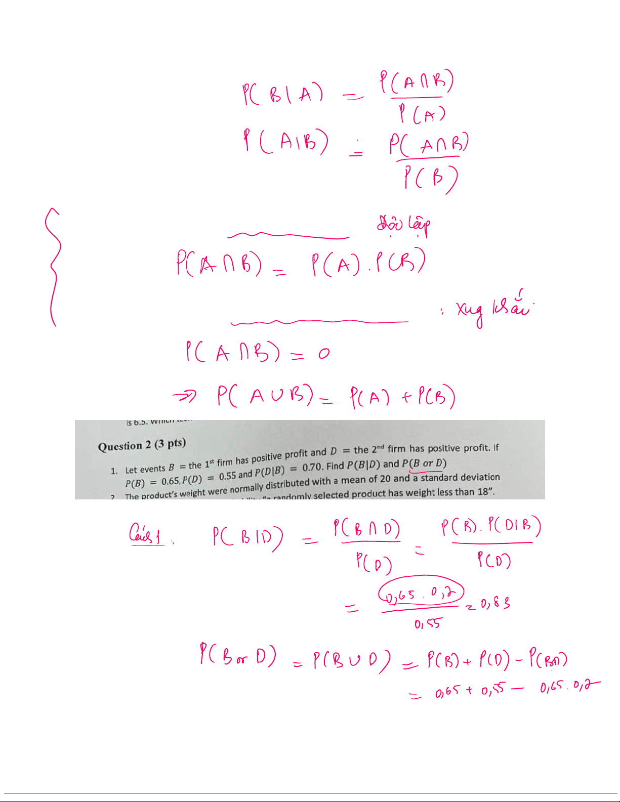 Law of Intersection Law of Union Conditional Probability A and B are independent